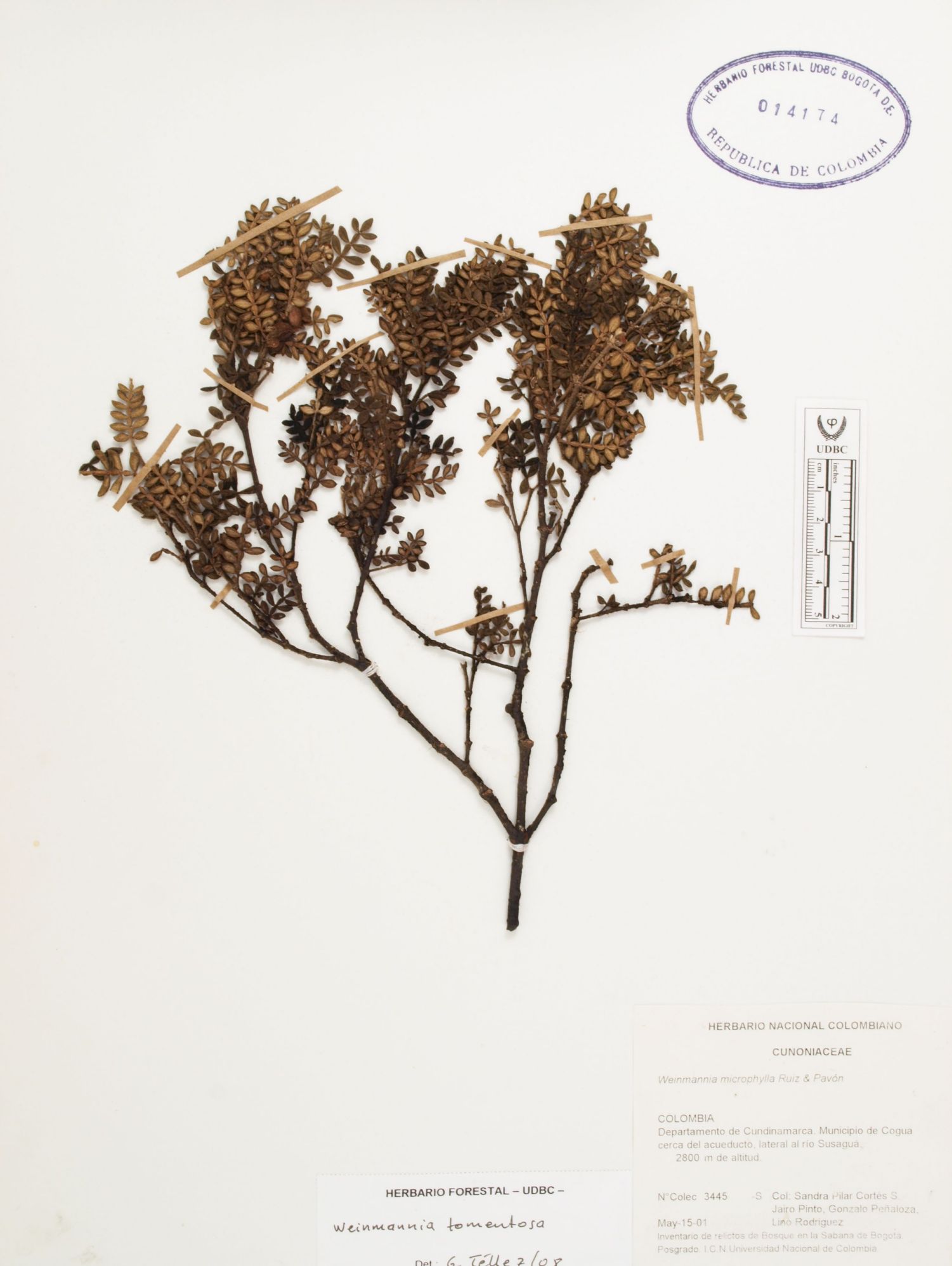 Fotografía del ejemplar Cortés, S. 3445, determinado como Weinmannia tomentosa en el año 2008
