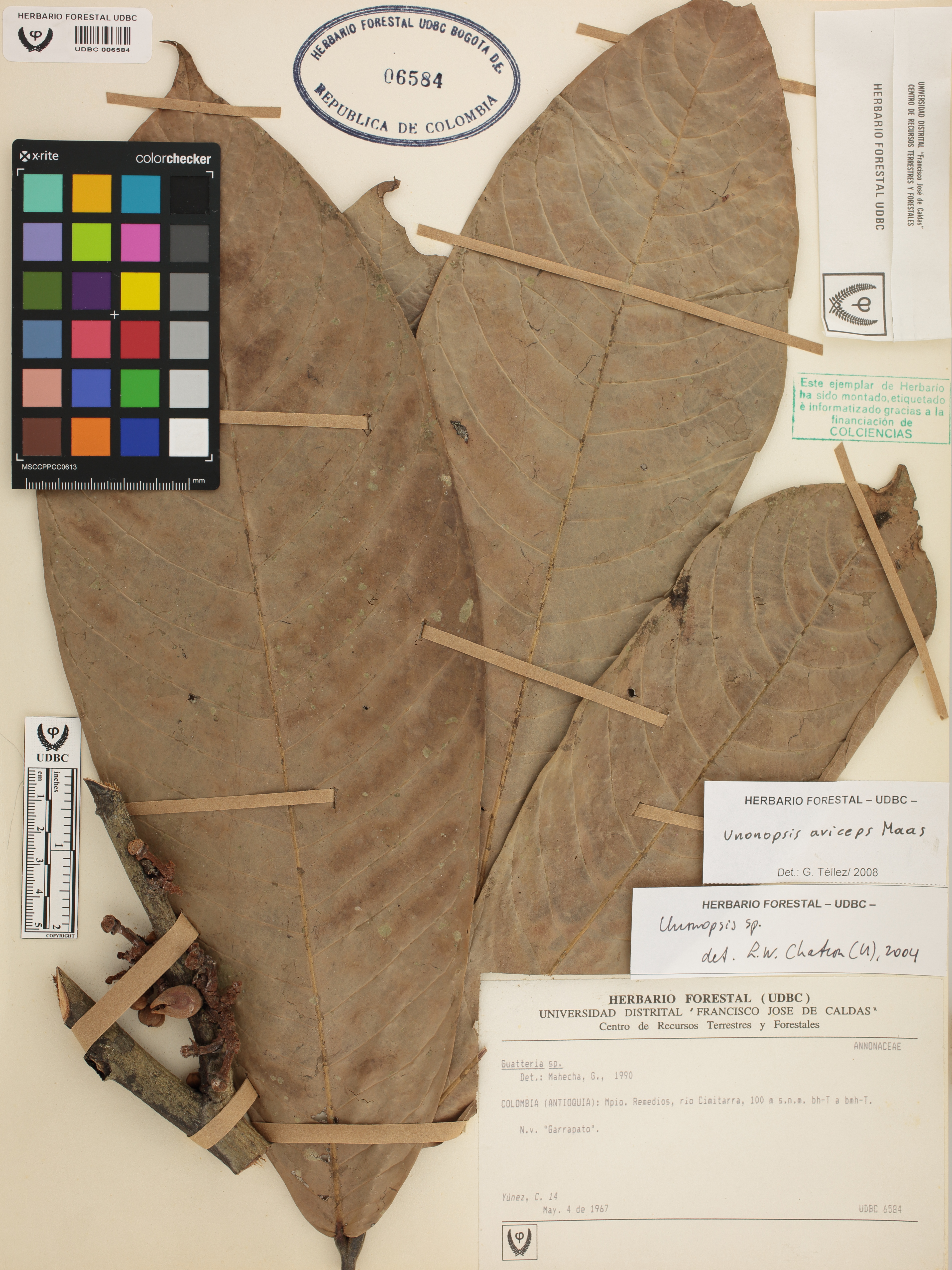 Fotografía del ejemplar Yúñez, C. 14, determinado como Unonopsis aviceps en el año 2008