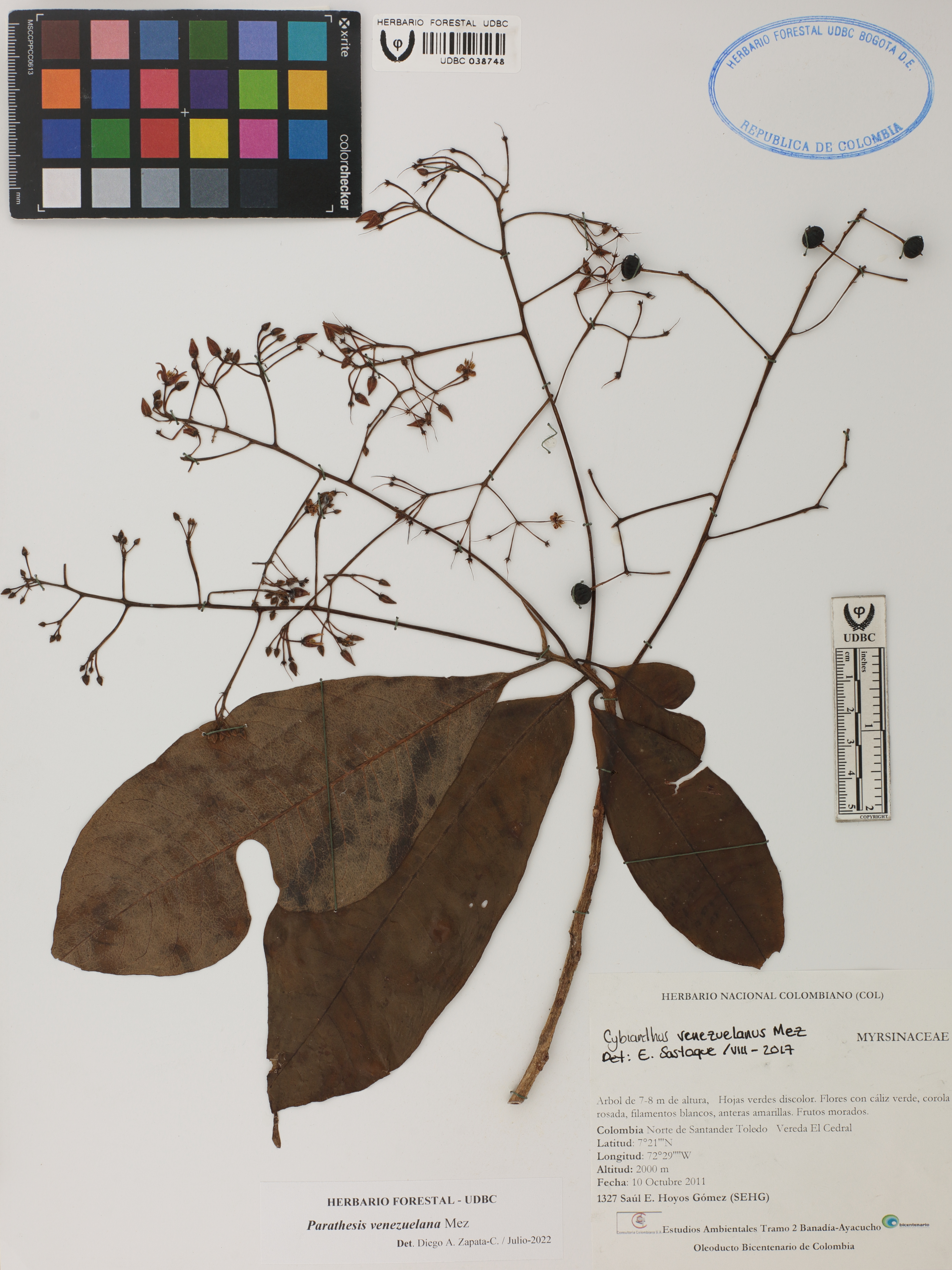 Fotografía del ejemplar Hoyos, S. 1327, determinado como Parathesis venezuelana en el año 2022