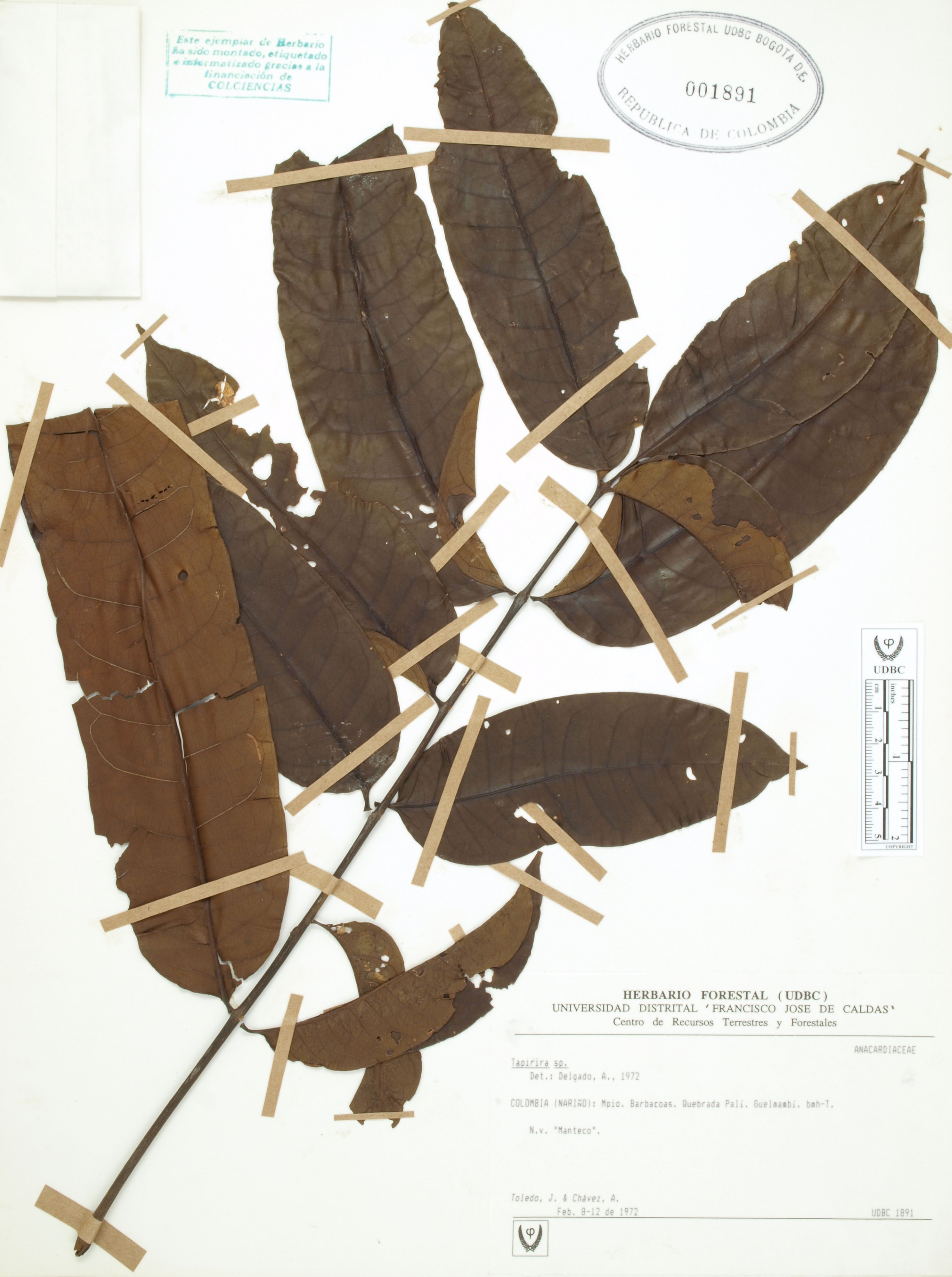 | dc.description | Fotografía del ejemplar Toledo, J., determinado como Tapirira guianensis en el año 2009 | |