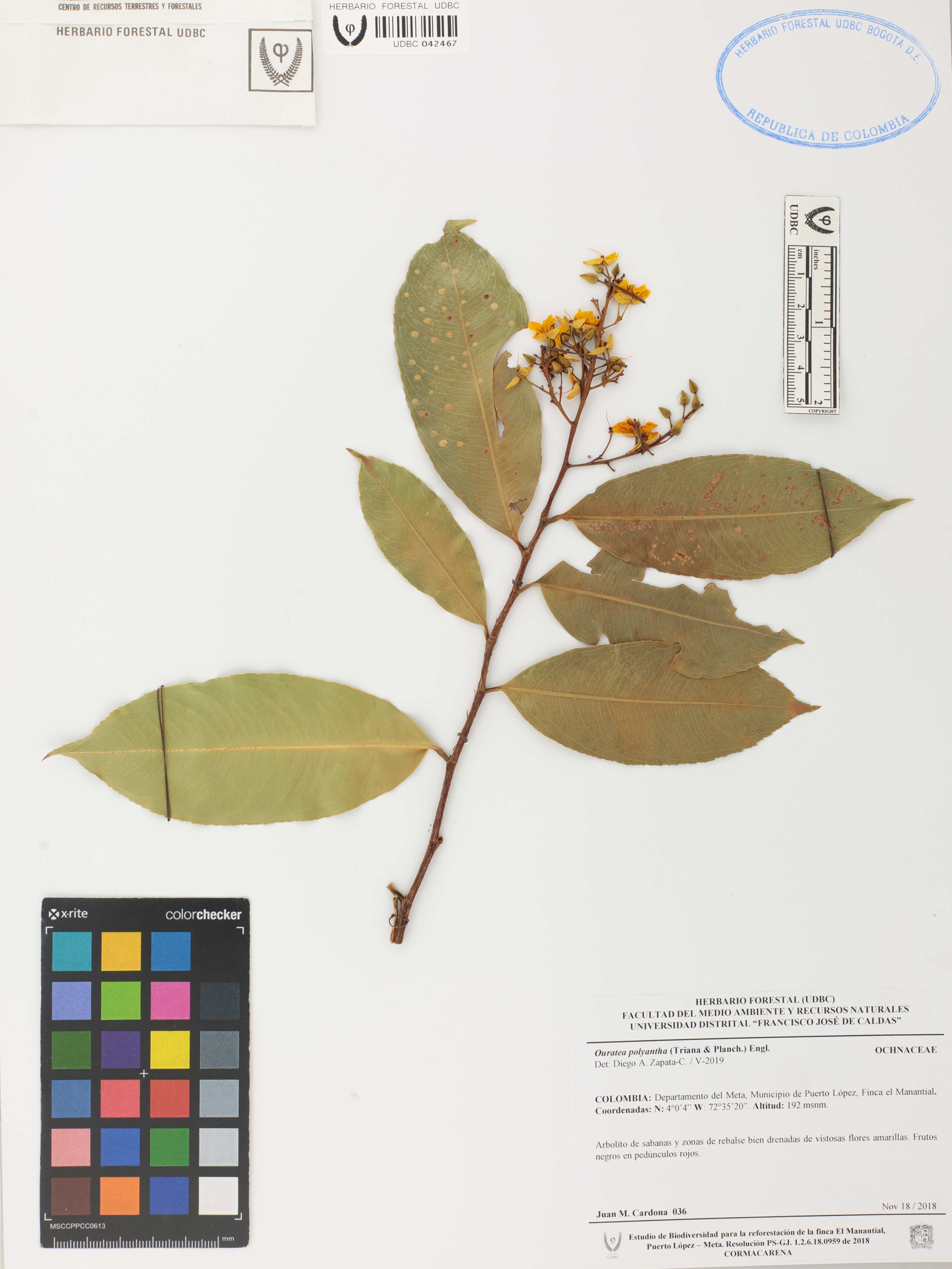 Fotografía del ejemplar Cardona, J. 36, determinado como Ouratea polyantha en el año 2019