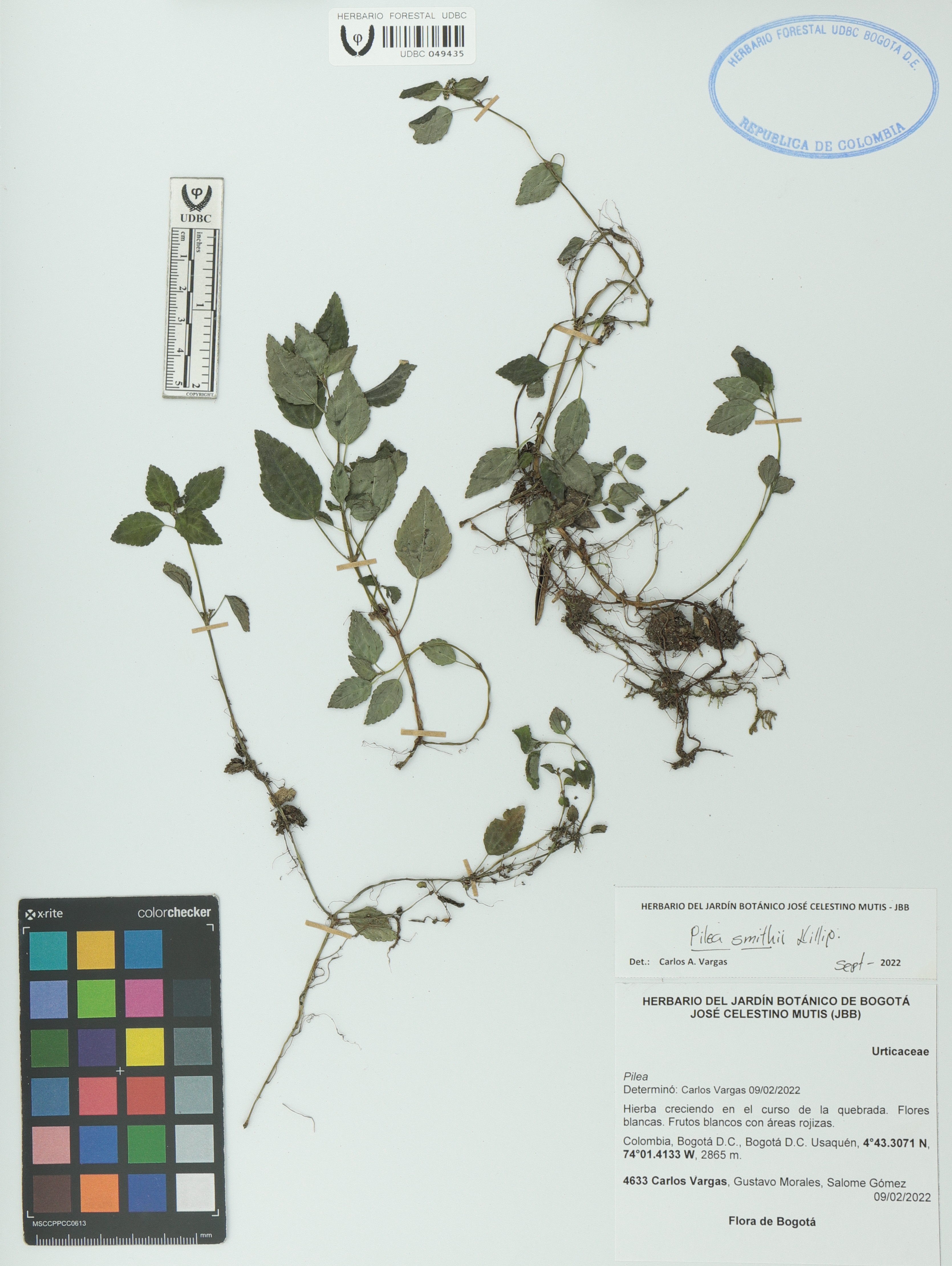 Fotografía del ejemplar Vargas, C. 4633, determinado como Pilea smithii en el año 2022