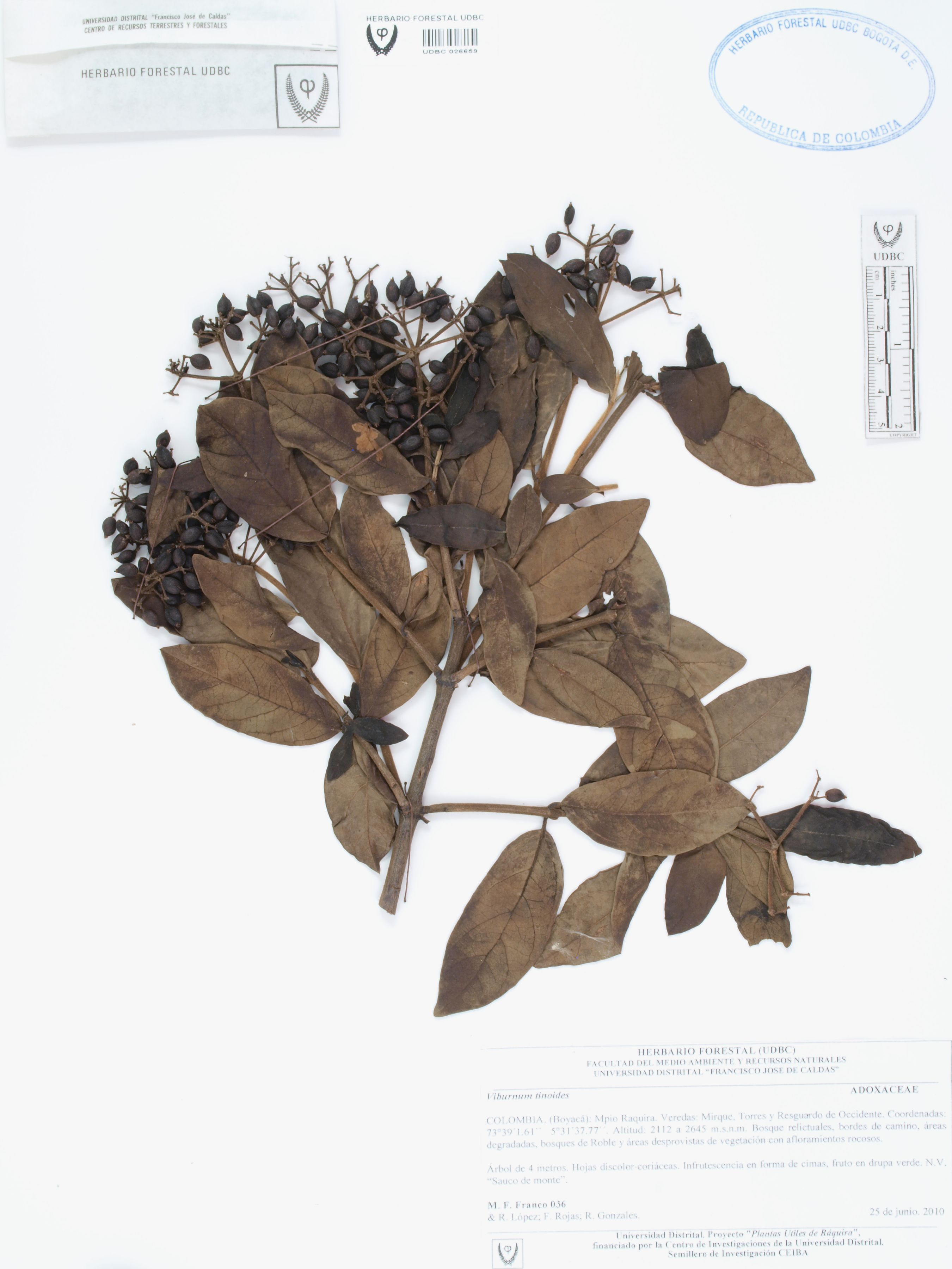 Fotografía del ejemplar Franco, M. 36, determinado como Viburnum tinoides