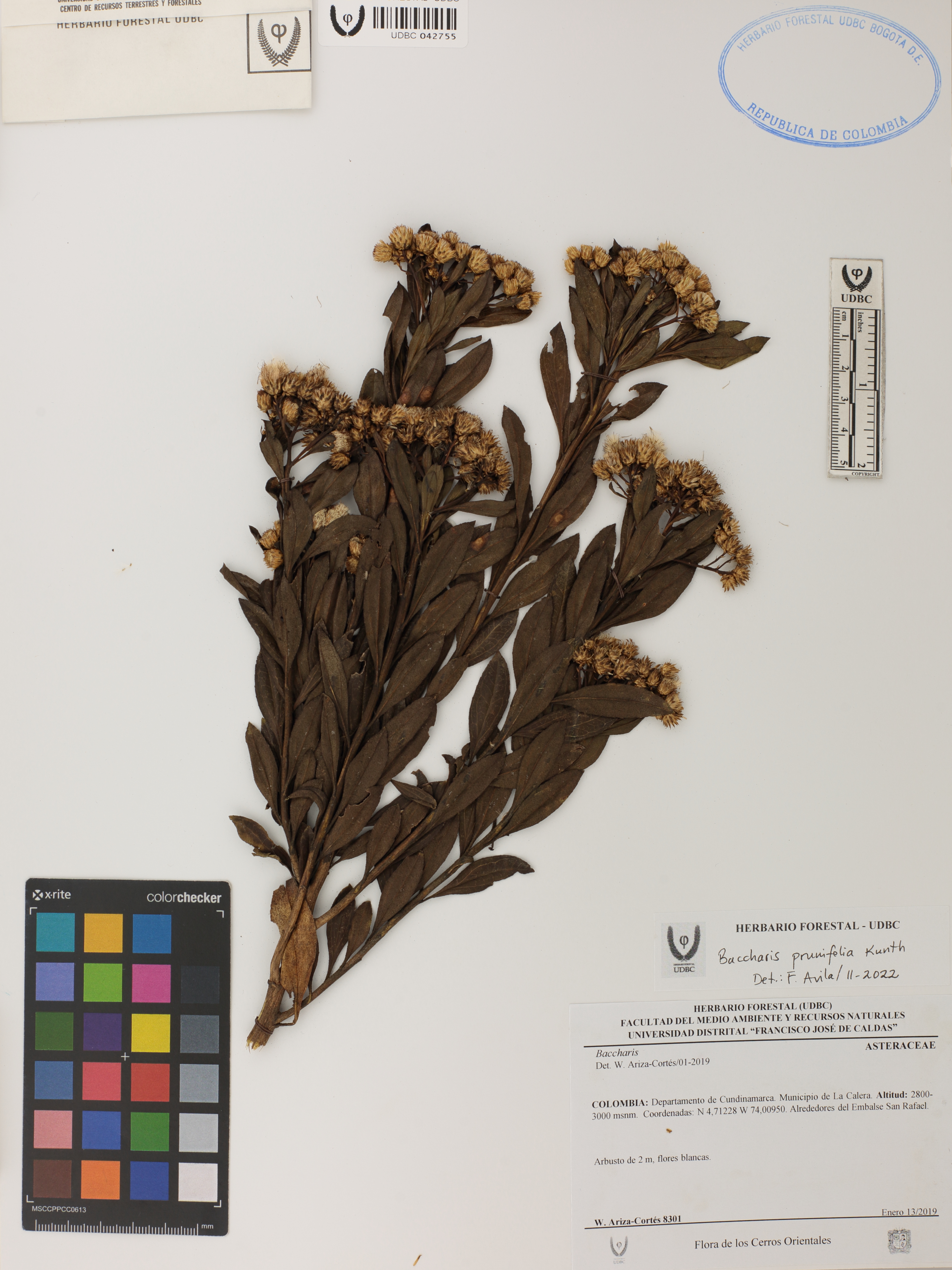 | dc.description | Fotografía del ejemplar Ariza-C., W. 8301, determinado como Baccharis prunifolia en el año 2022 | |