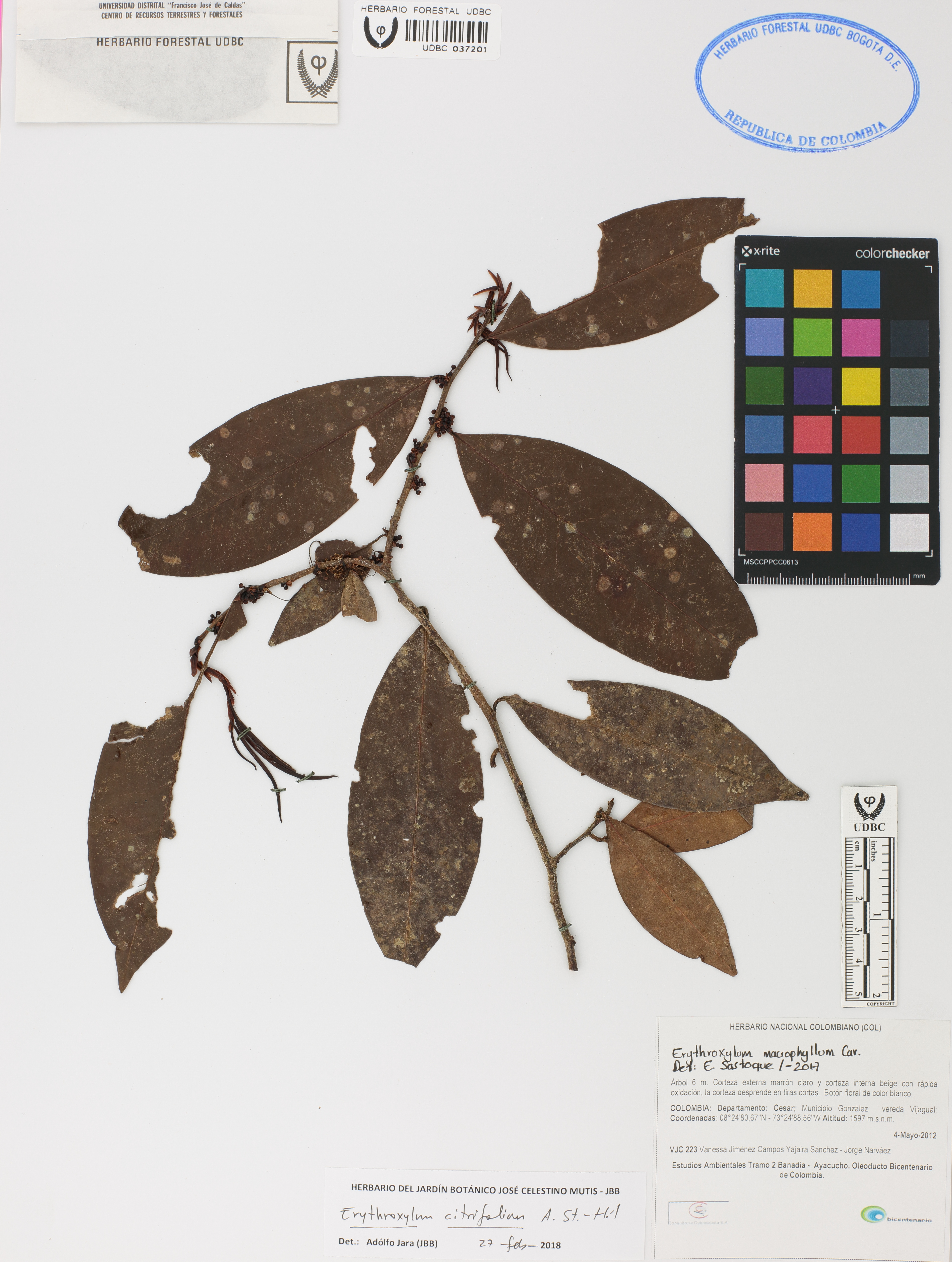 | dc.description | Fotografía del ejemplar Jiménez, V. 223, determinado como Erythroxylum citrifolium en el año 2017 | |