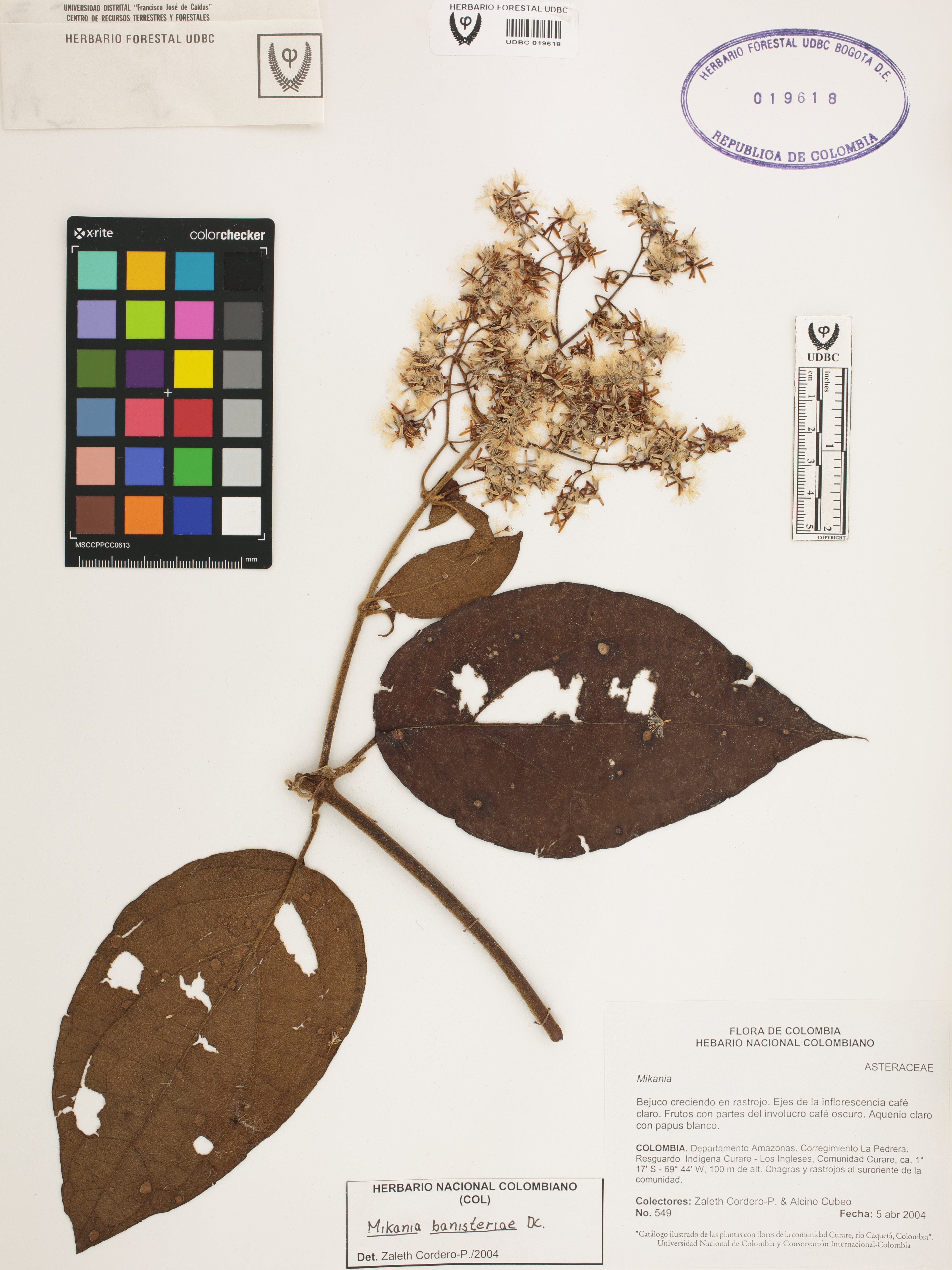 | dc.description | Fotografía del ejemplar Cordero-P., Z. 549, determinado como Mikania banisteriae en el año 2004 | |