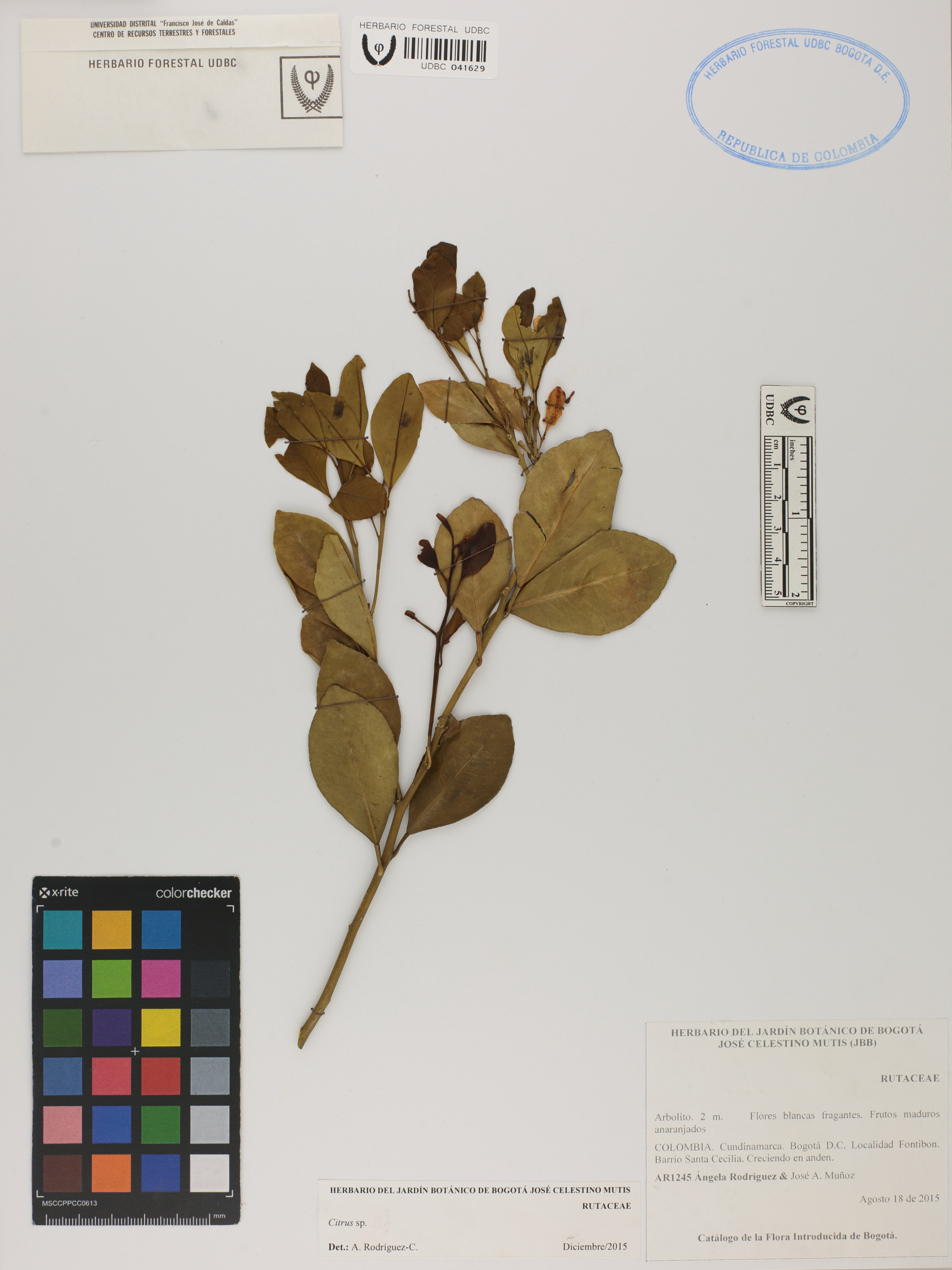Fotografía del ejemplar Rodríguez, A. 1245, determinado como Citrus sp. en el año 2015
