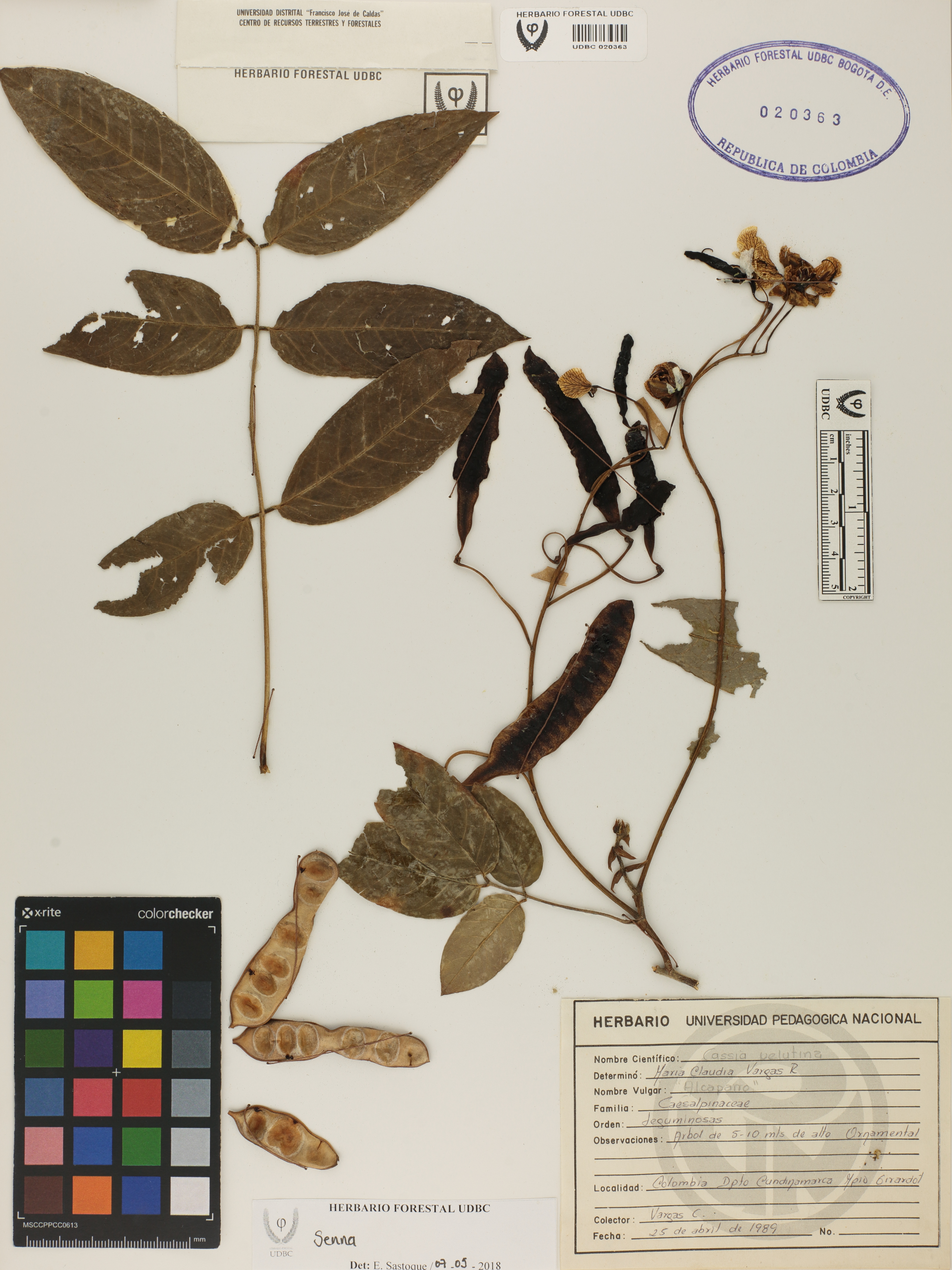 Fotografía del ejemplar Vargas, C., determinado como Senna sp. en el año 2018