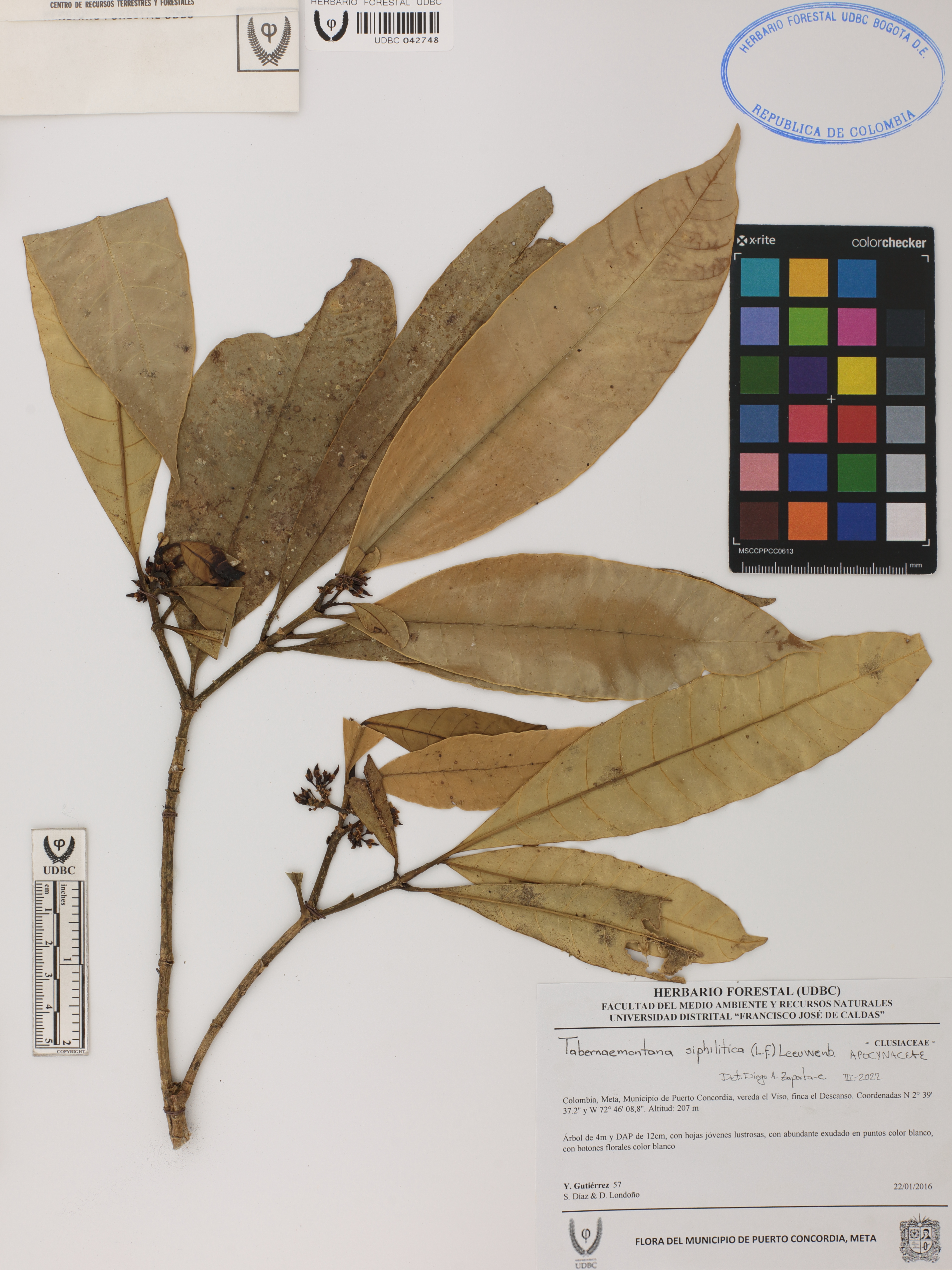 Fotografía del ejemplar Gutiérrez, Y. 57, determinado como Tabernaemontana siphilitica en el año 2022