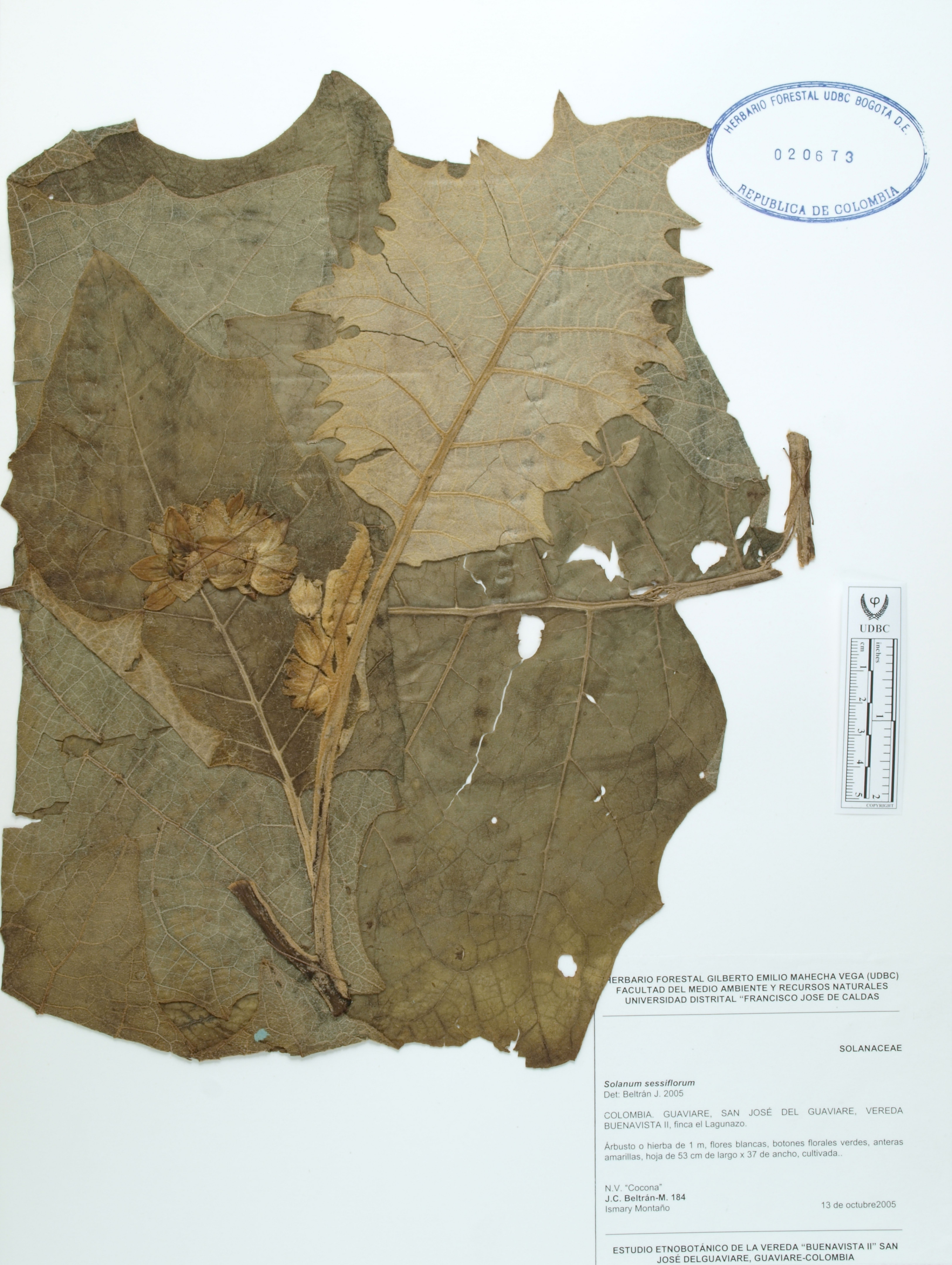 Fotografía del ejemplar Beltrán, J. 184, determinado como Solanum sessiliflorum en el año 2005