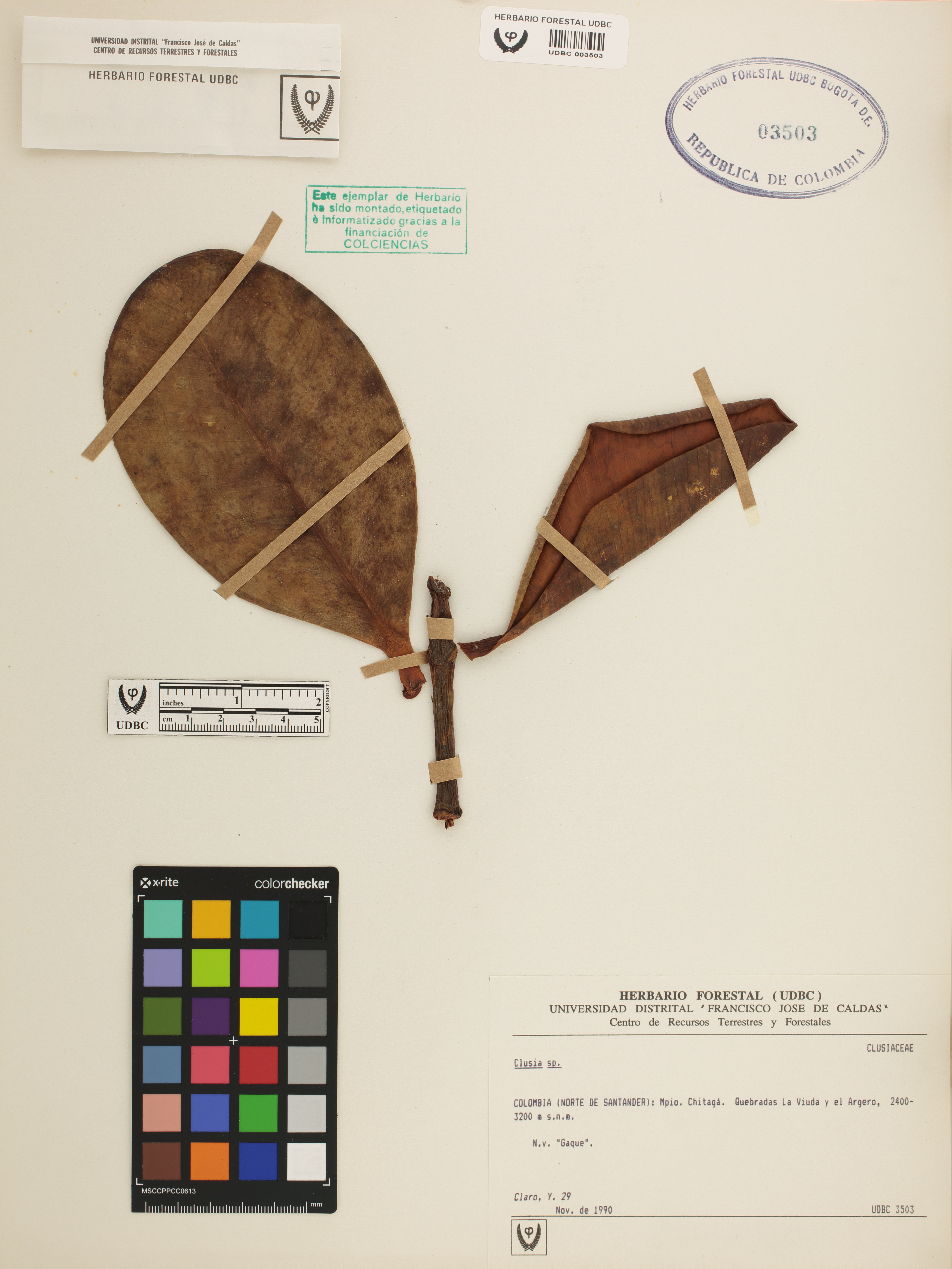 Fotografía del ejemplar Claro, Y. 29, determinado como Clusia sp.