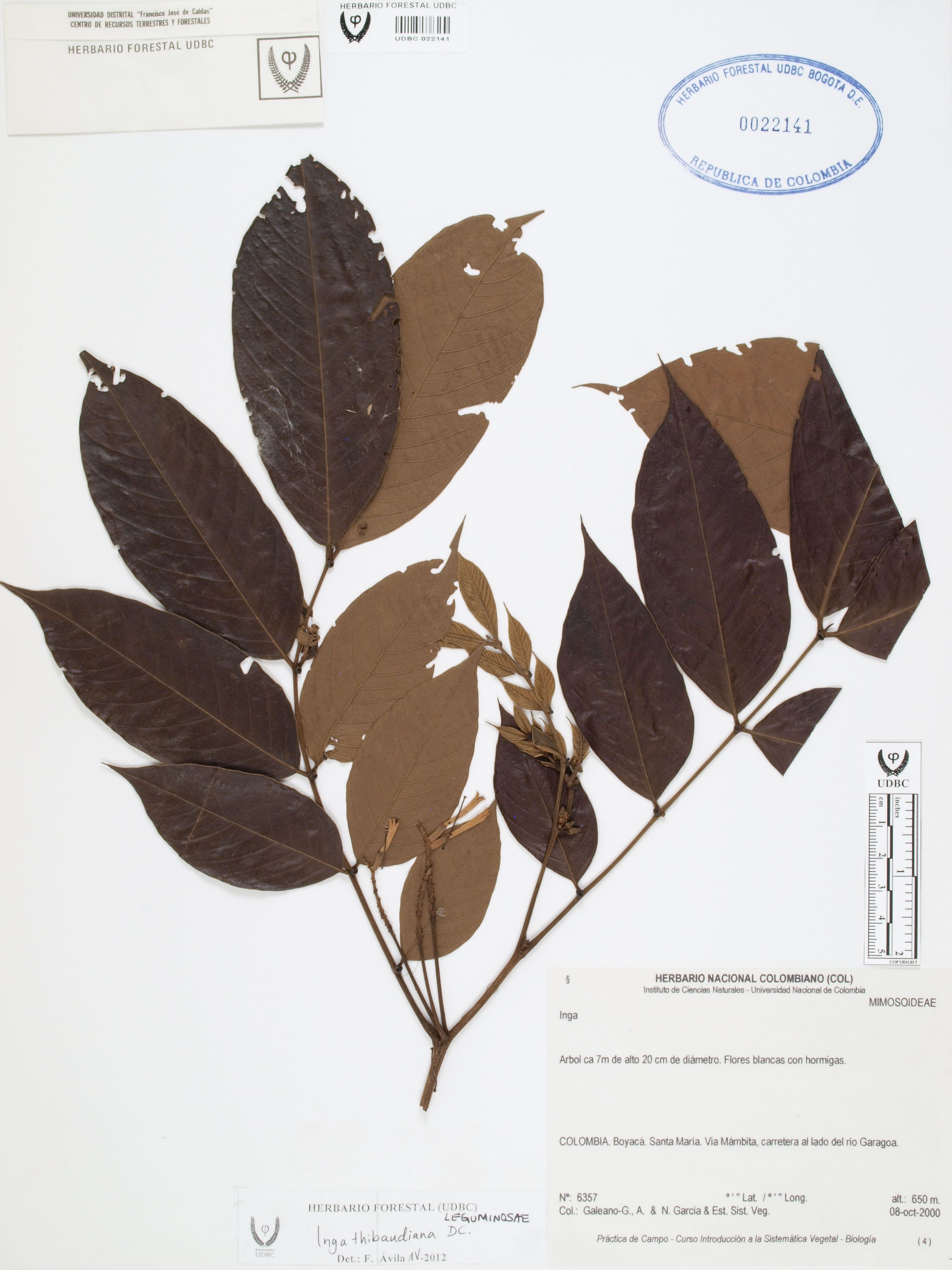 | dc.description | Fotografía del ejemplar Galeano, G. 6357, determinado como Inga thibaudiana en el año 2012 | |