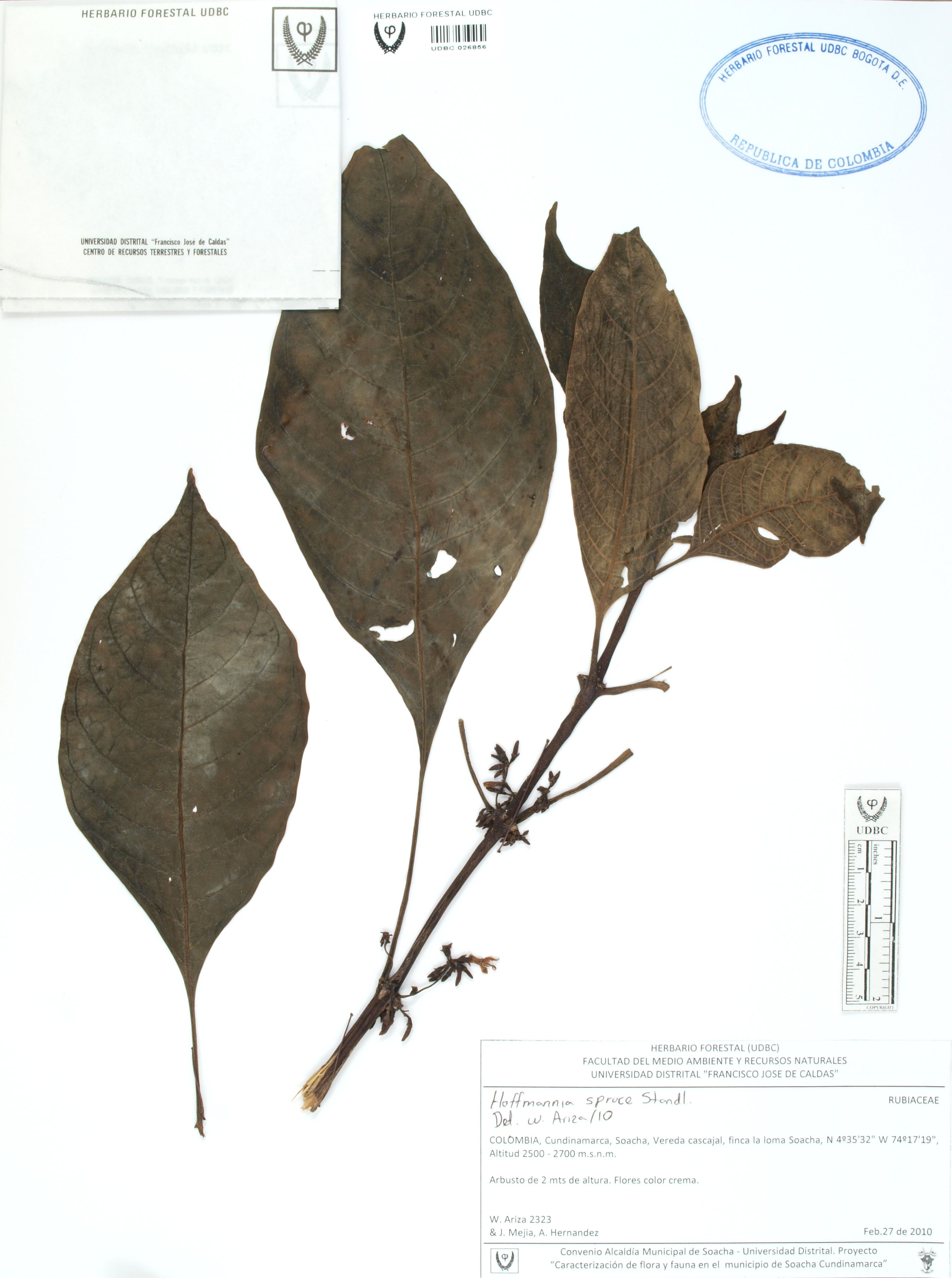 | dc.description | Fotografía del ejemplar Ariza, W. 2323, determinado como Hoffmannia sprucei en el año 2010 | |