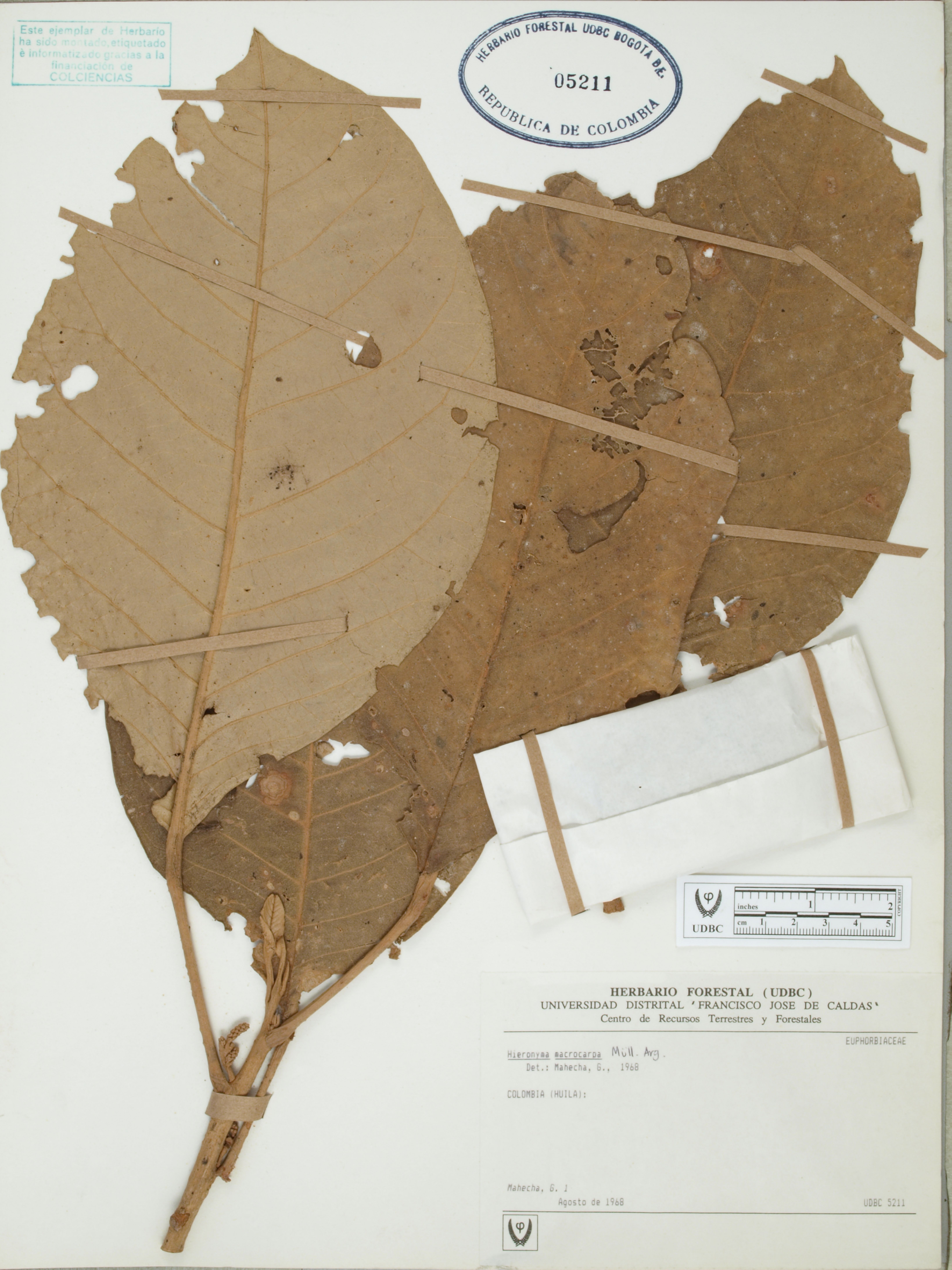 Fotografía del ejemplar Mahecha, G. 1, determinado como Hieronyma macrocarpa