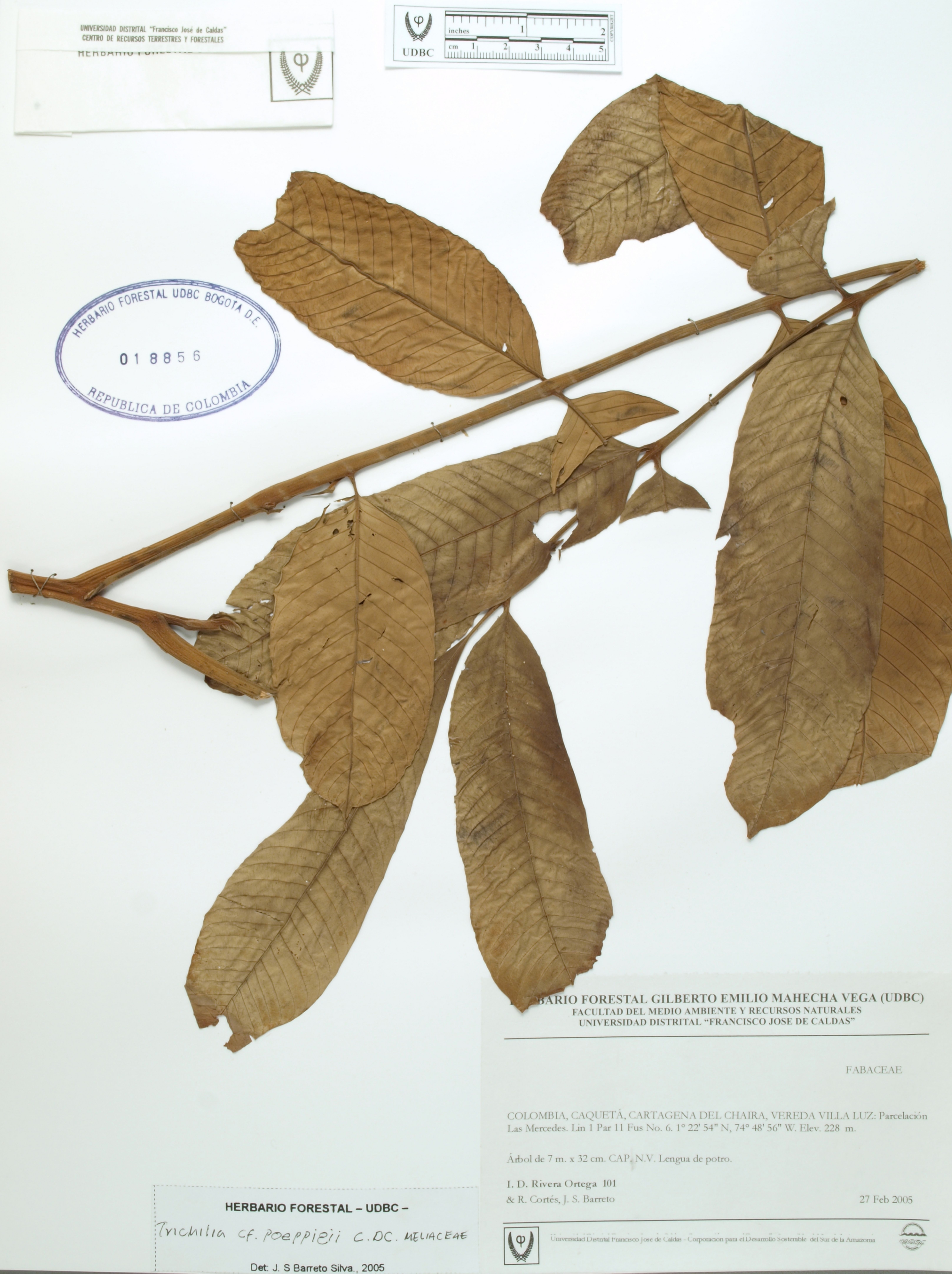 | dc.description | Fotografía del ejemplar Rivera, I. 101, determinado como Trichilia poeppigii en el año 2005 | |
