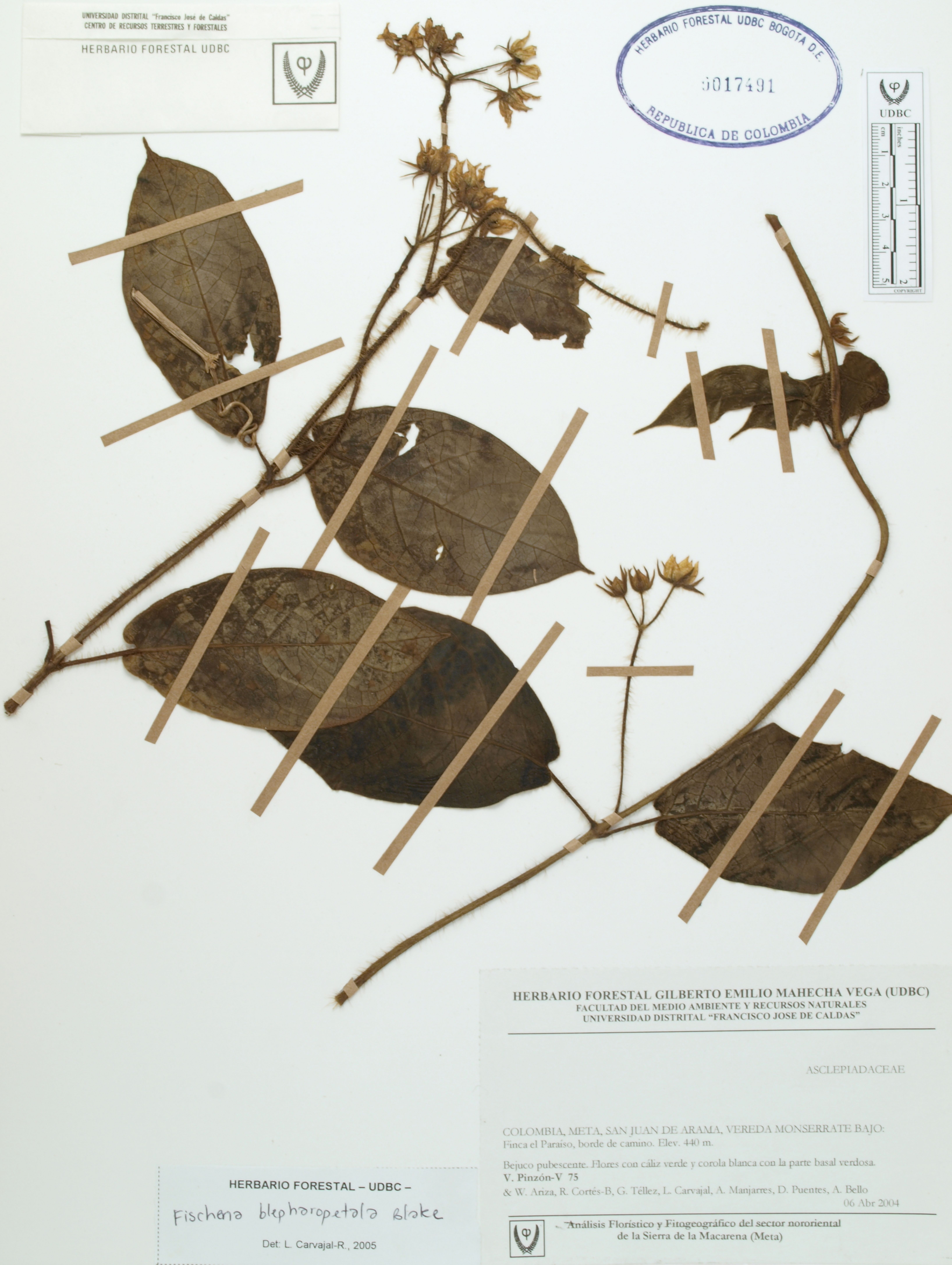 | dc.description | Fotografía del ejemplar Pinzón, V. 75, determinado como Fischeria blepharopetala en el año 2005 | |
