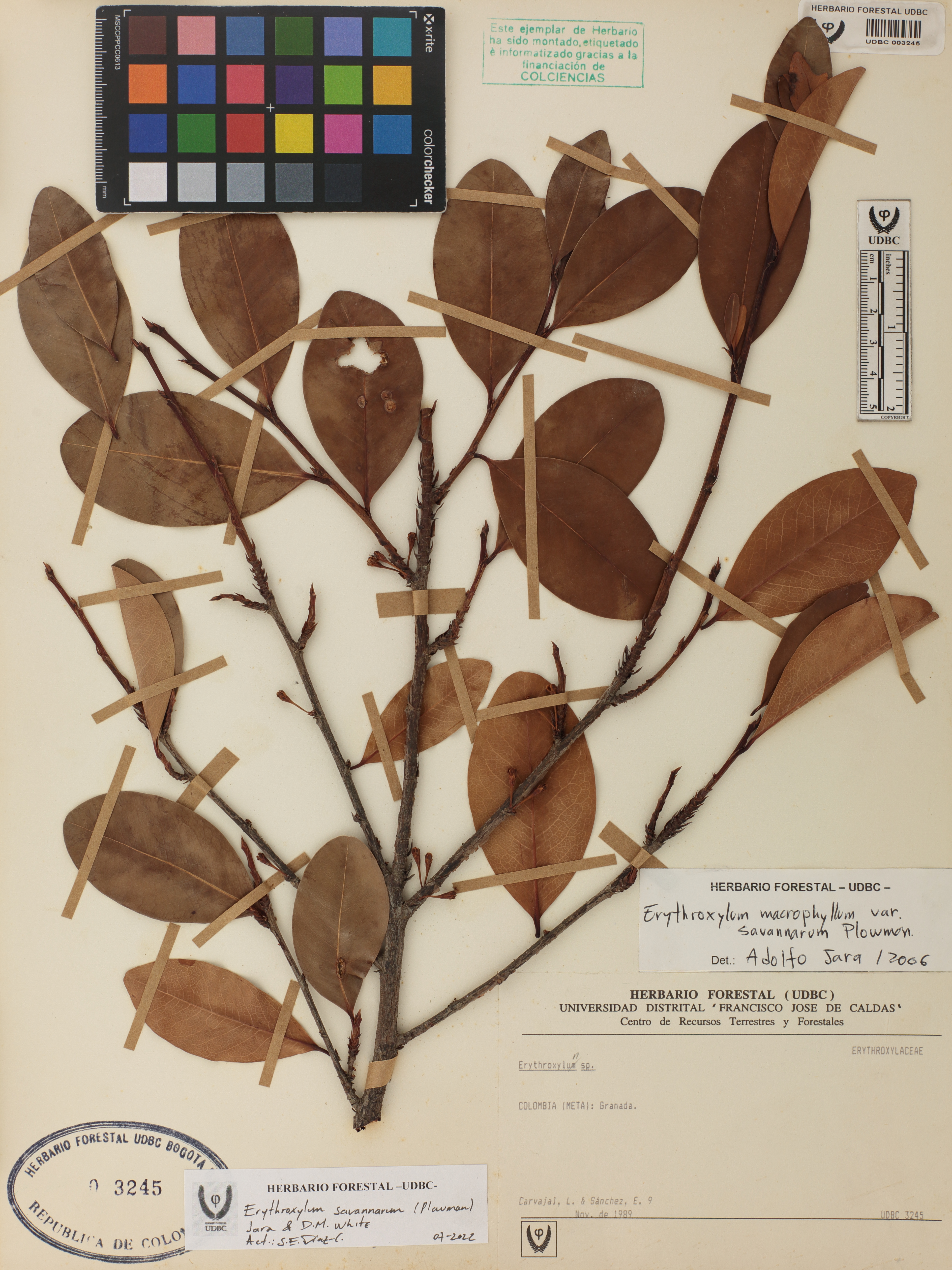 Fotografía del ejemplar Carvajal, L. 9, determinado como Erythroxylum savannarum en el año 2006