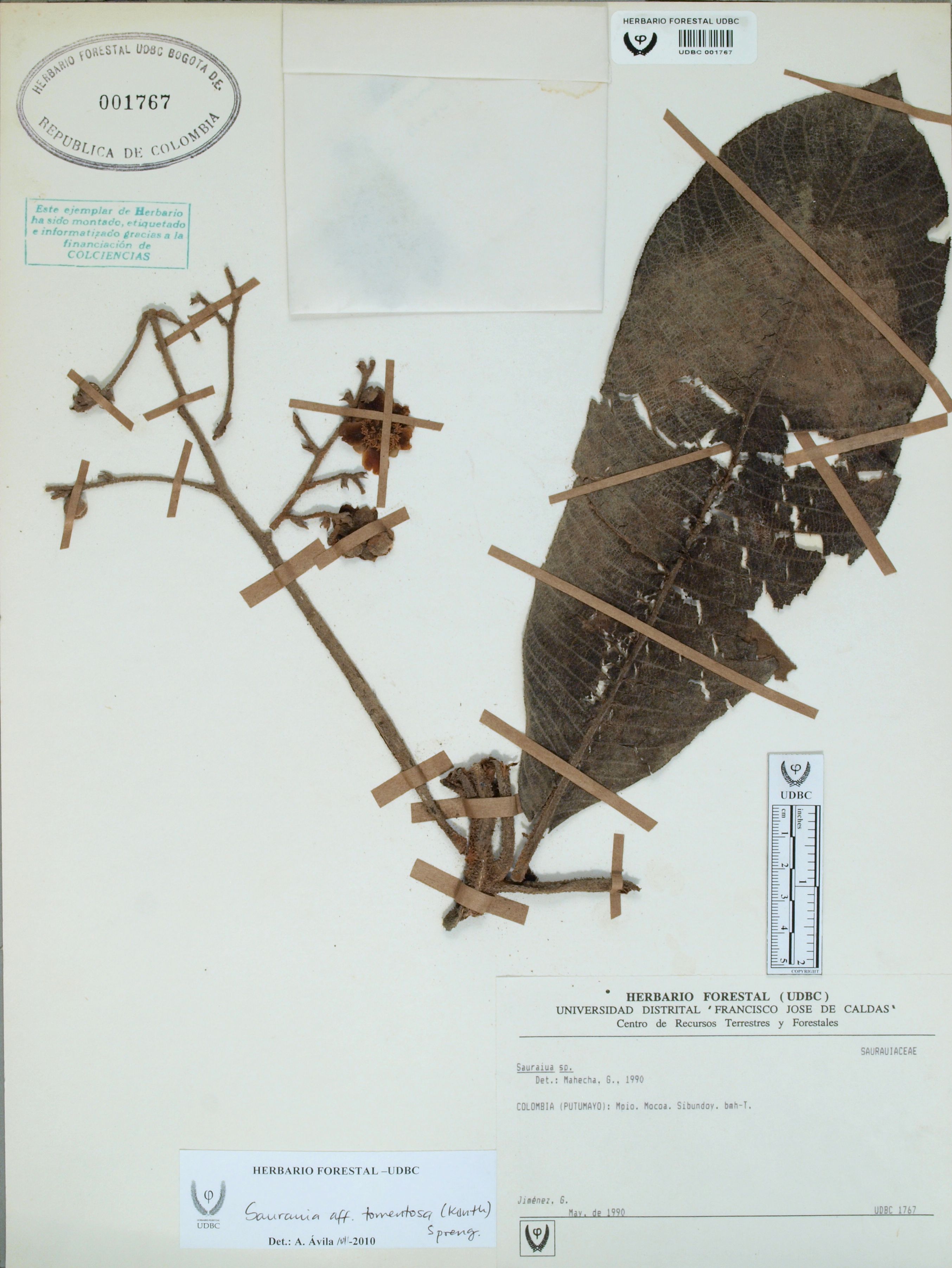 Fotografía del ejemplar Jiménez, G., determinado como Saurauia tomentosa en el año 2010