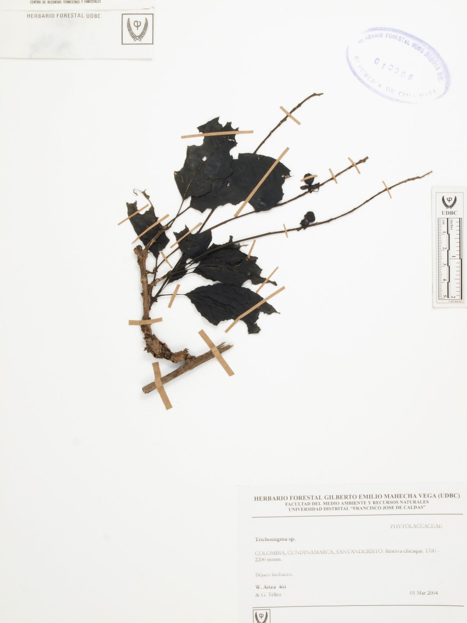 Fotografía del ejemplar Ariza, W. 461, determinado como Trichostigma sp.