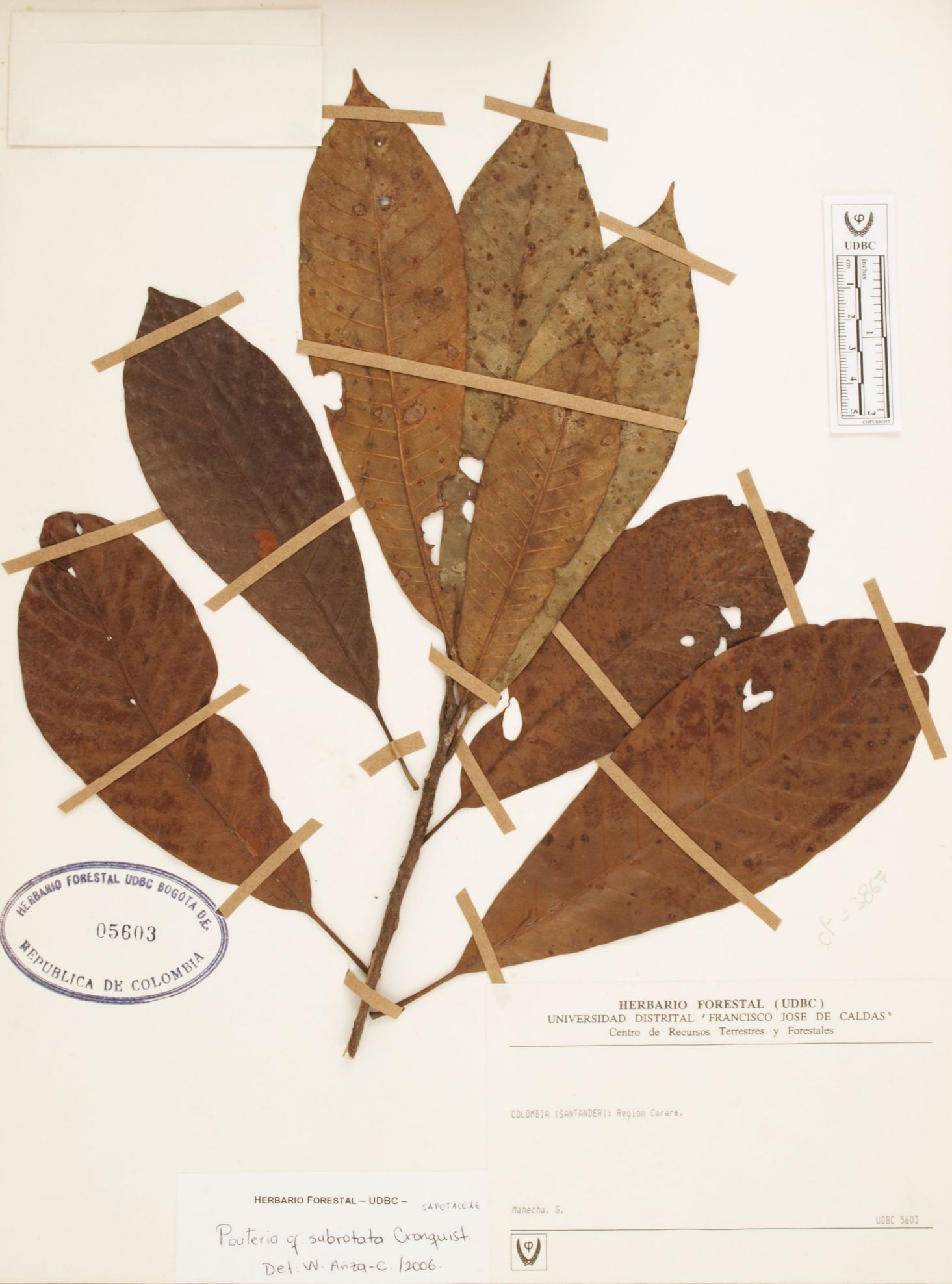 Fotografía del ejemplar Mahecha, G., determinado como Pouteria subrotata en el año 2006