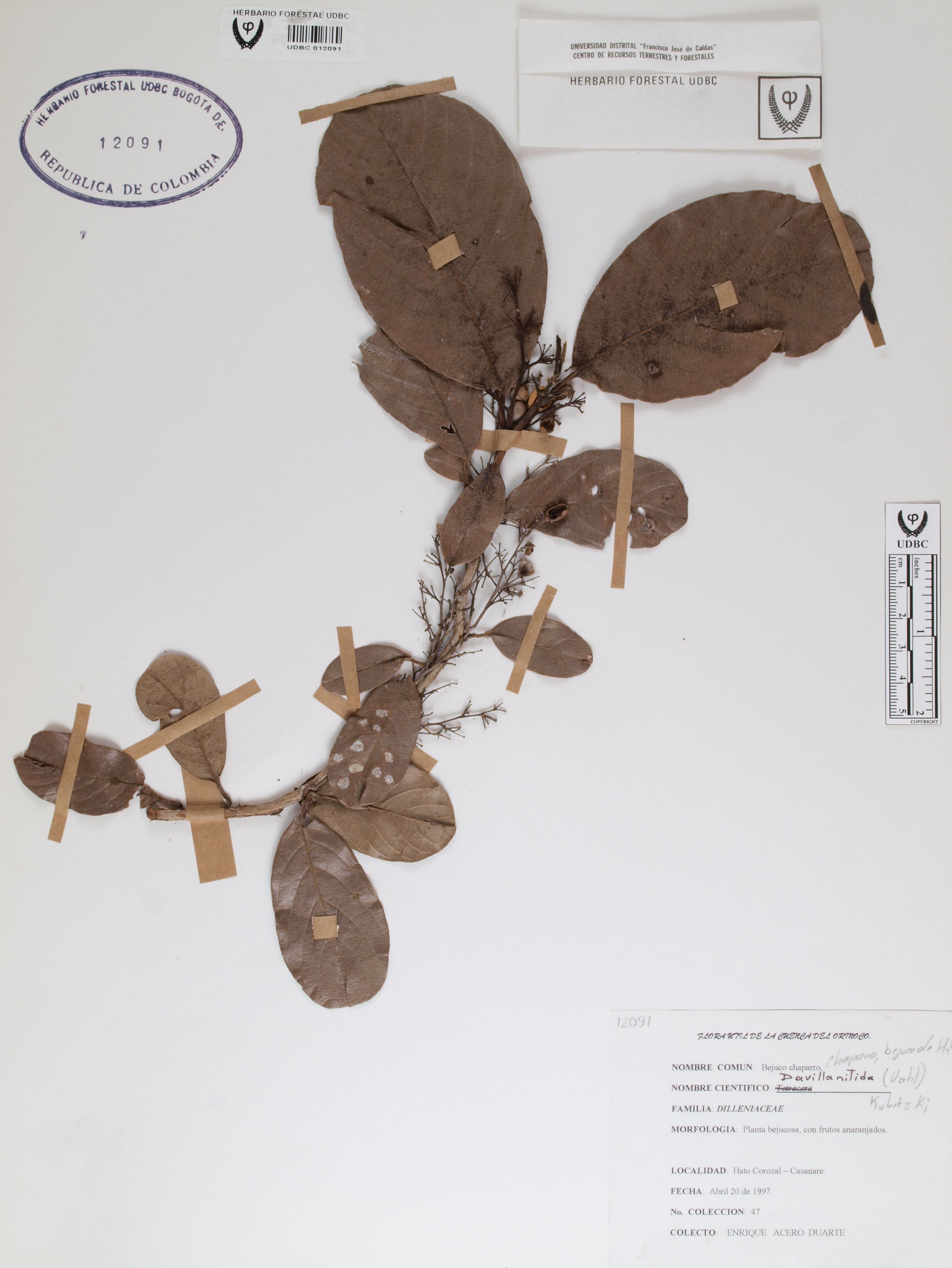 Fotografía del ejemplar Acero, E. 47, determinado como Davilla nitida