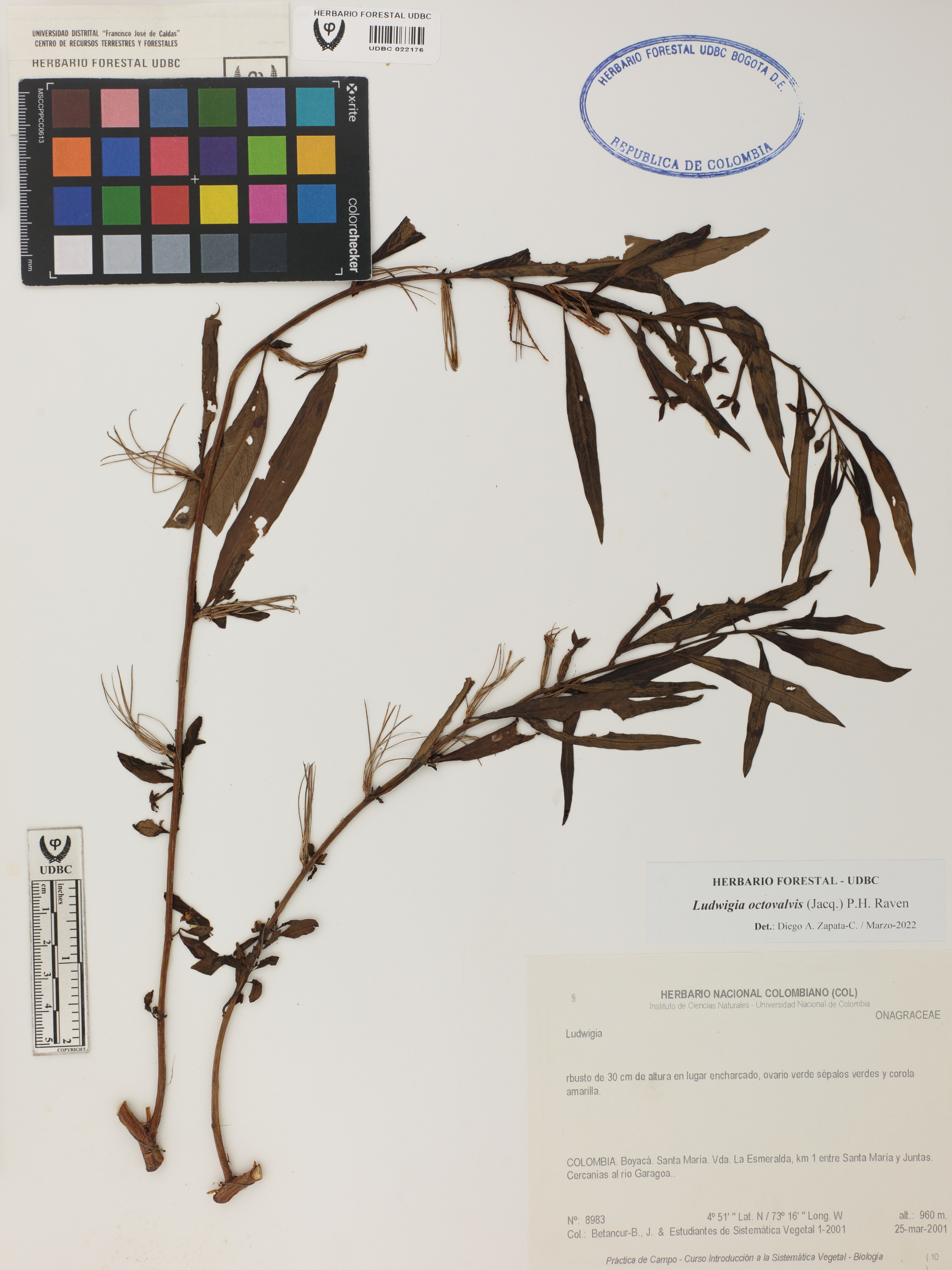 | dc.description | Fotografía del ejemplar Betancur, J. 8983, determinado como Ludwigia octovalvis en el año 2022 | |
