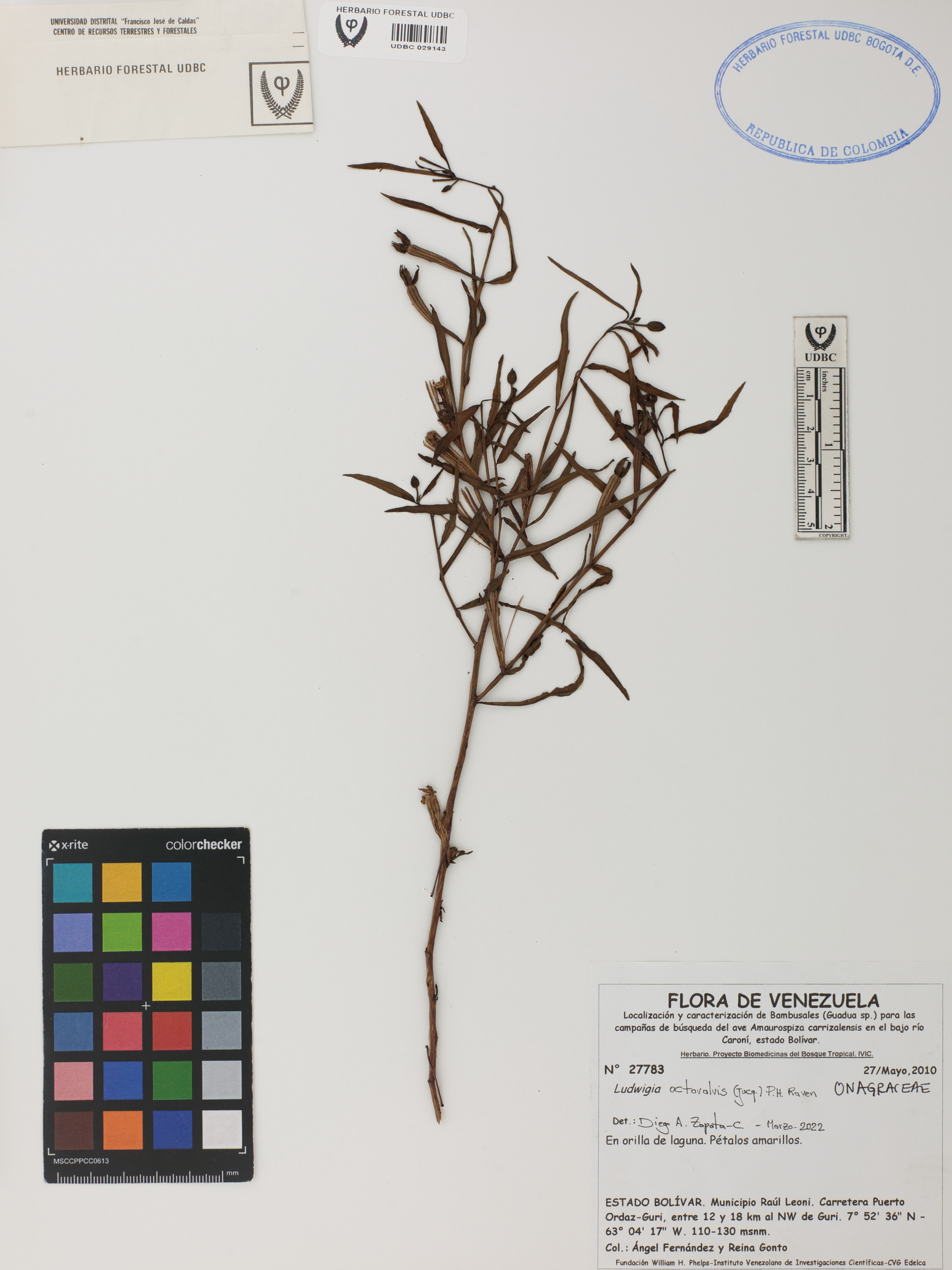 Fotografía del ejemplar Fernández, A. 27783, determinado como Ludwigia octovalvis en el año 2022
