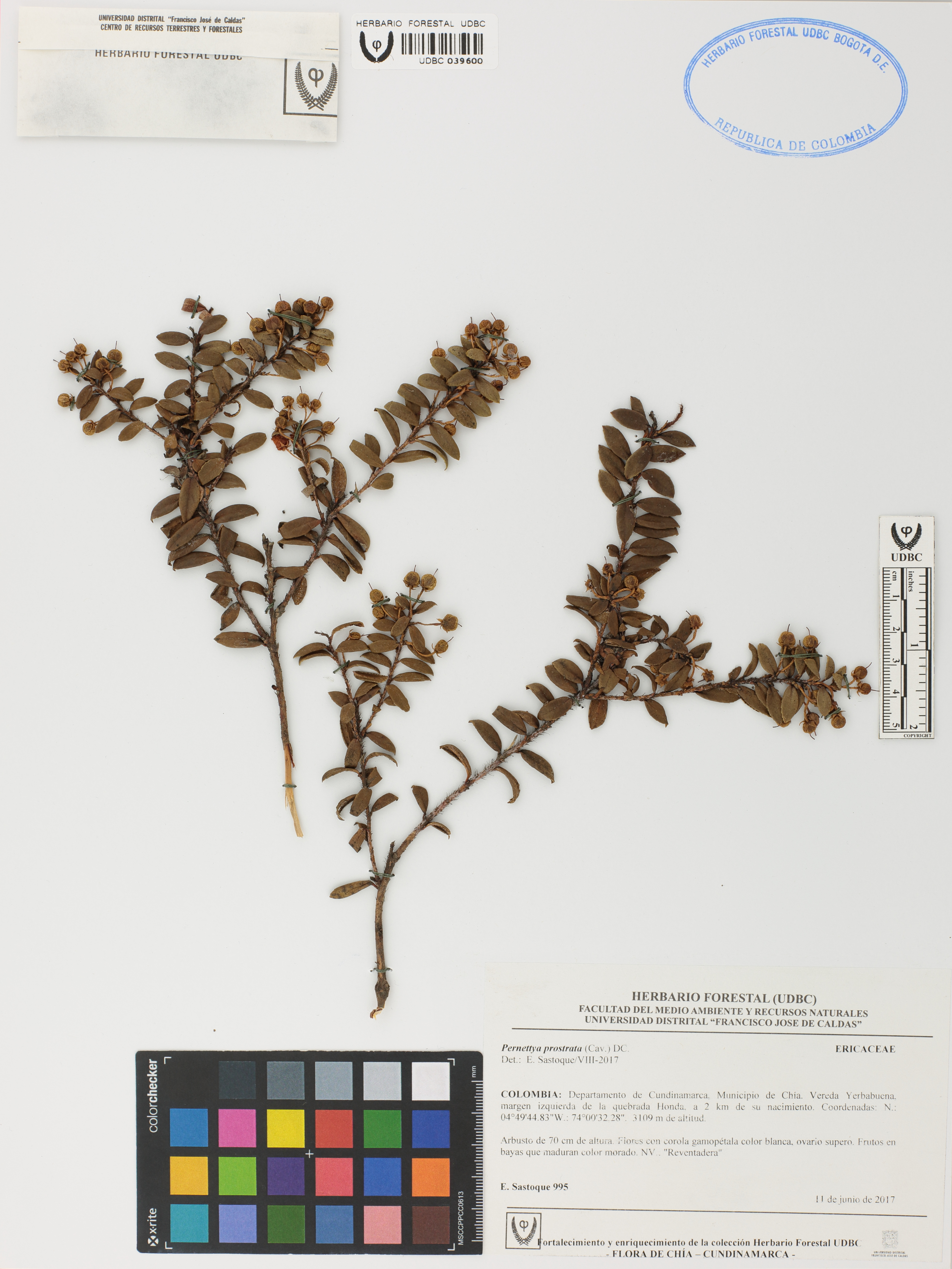 Fotografía del ejemplar Sastoque, E. 995, determinado como Pernettya prostrata en el año 2017