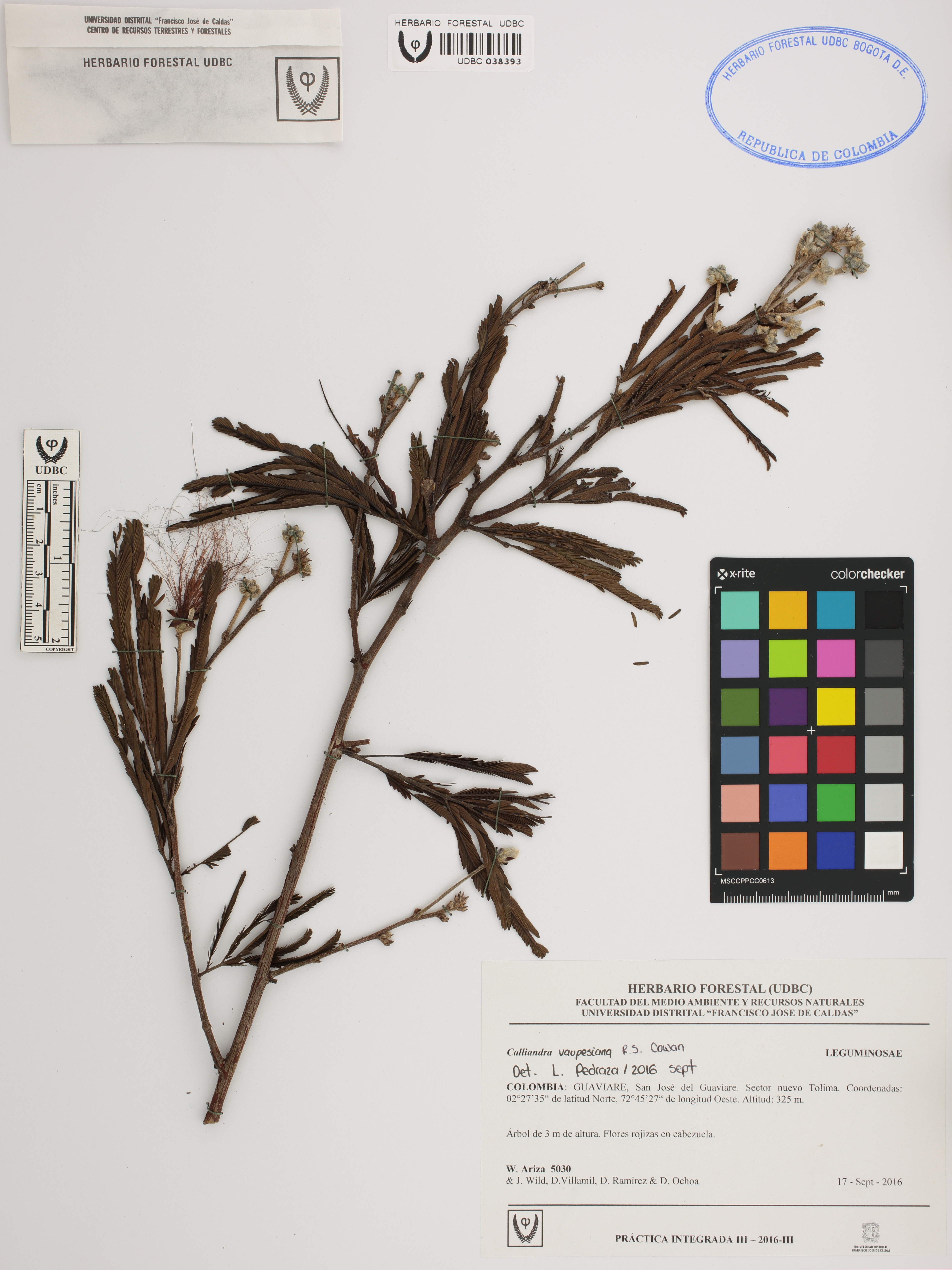 Fotografía del ejemplar Ariza, W. 5030, determinado como Calliandra vaupesiana en el año 2016