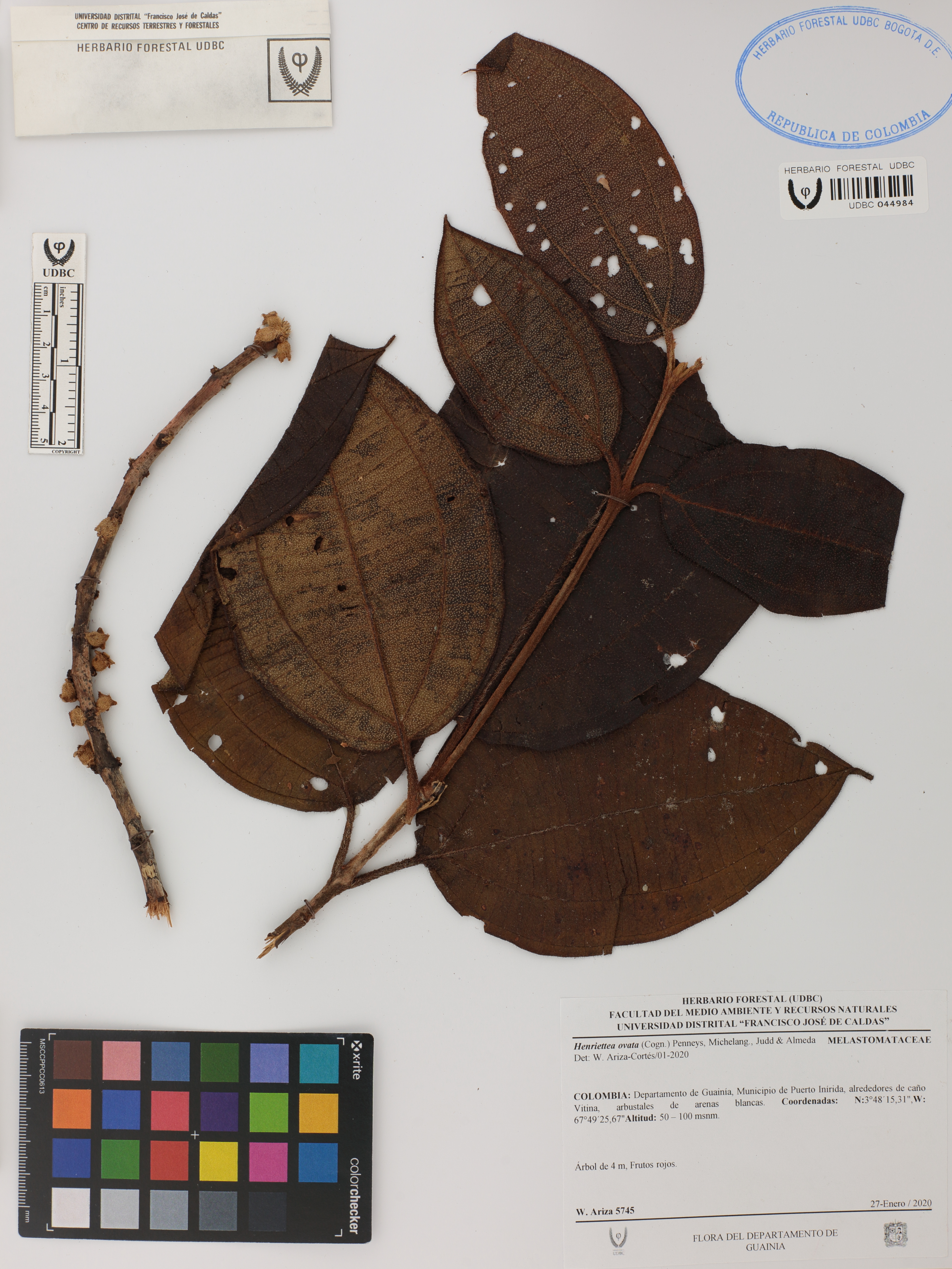 | dc.description | Fotografía del ejemplar Ariza-Cortés, W. 5745, determinado como Henriettea ovata en el año 2020 | |