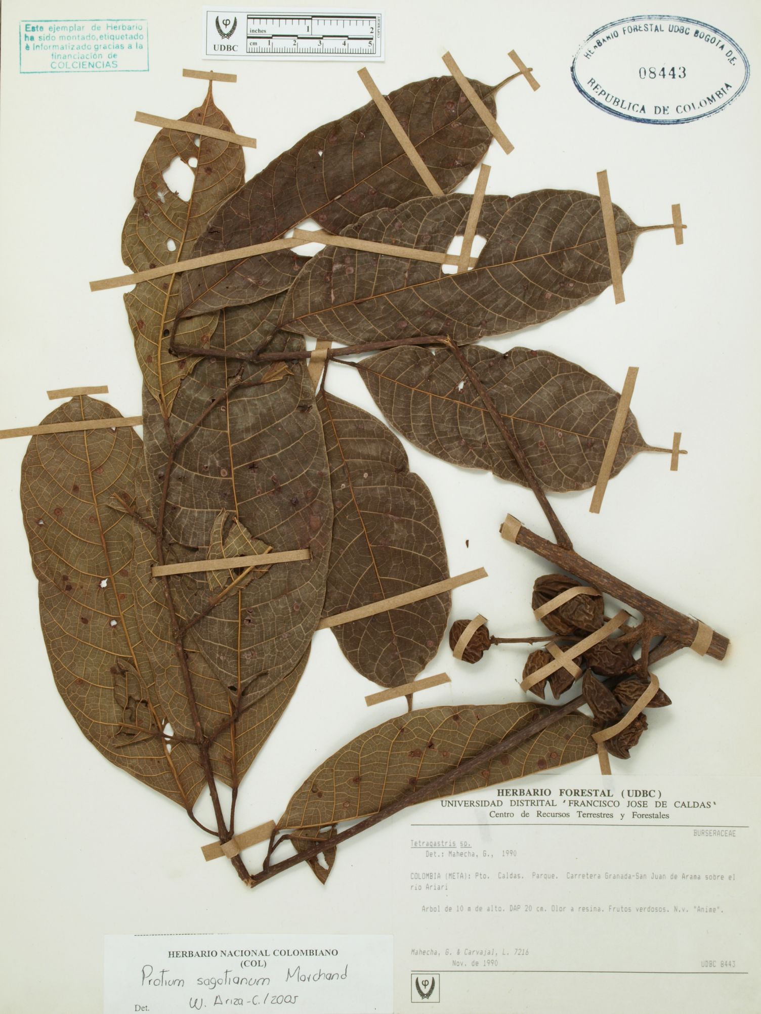 Fotografía del ejemplar Mahecha, G. 7216, determinado como Protium sagotianum en el año 2005