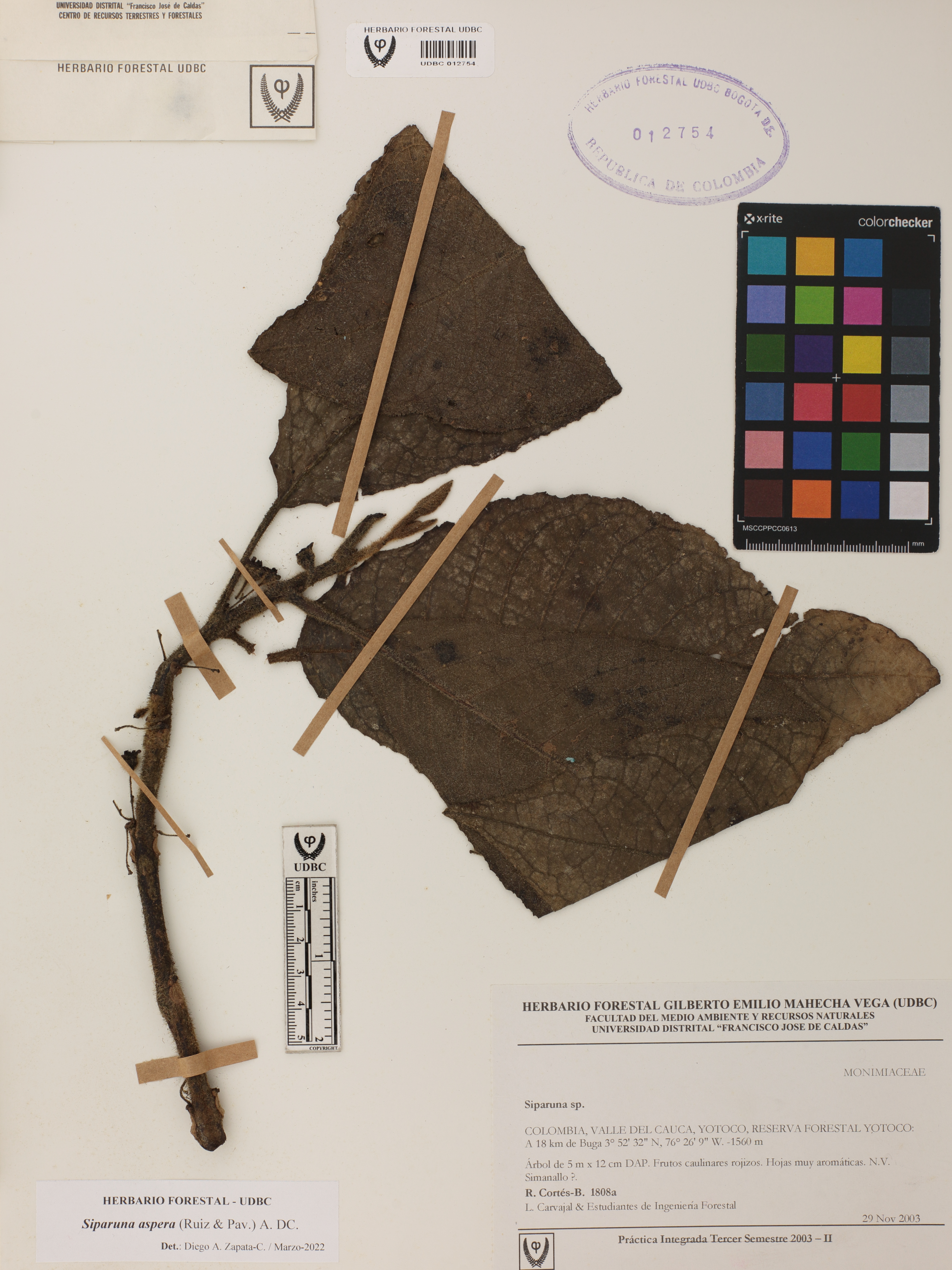 Fotografía del ejemplar Cortés-B., R. 1808, determinado como Siparuna aspera en el año 2022
