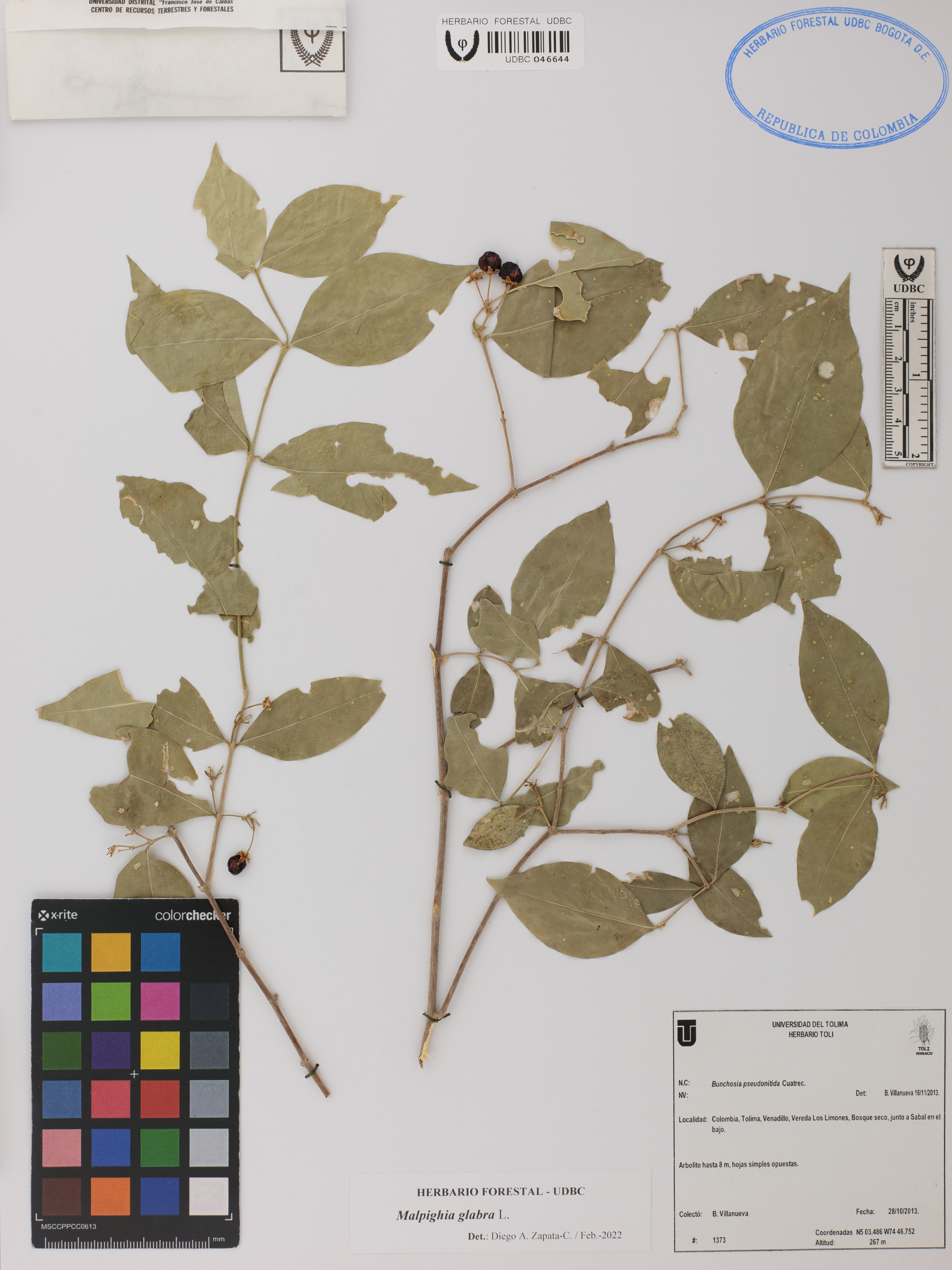 Fotografía del ejemplar Villanueva, B. 1373, determinado como Malpighia glabra en el año 2022