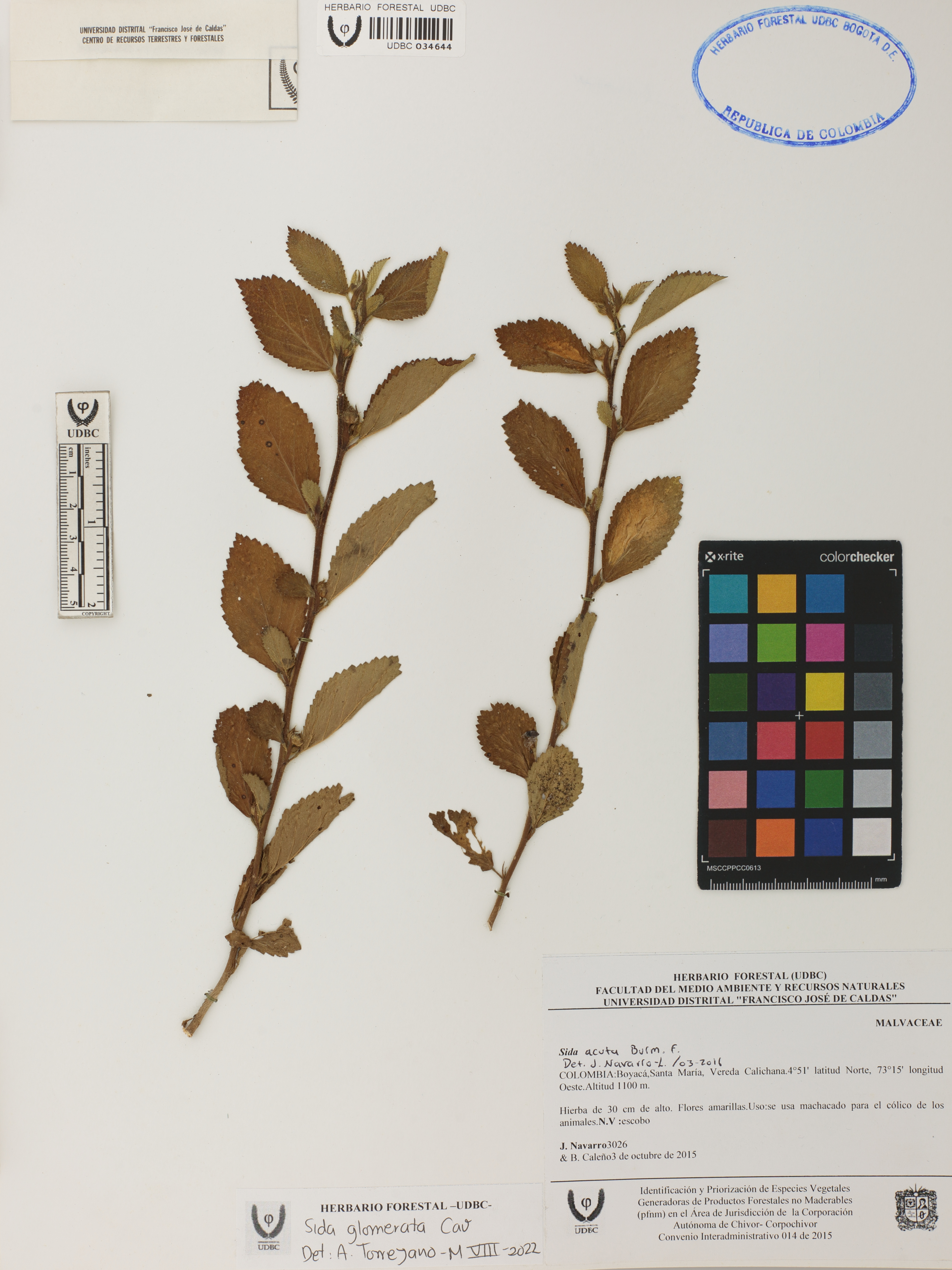 Fotografía del ejemplar Navarro-L., J. 3026, determinado como Sida glomerata en el año 2022