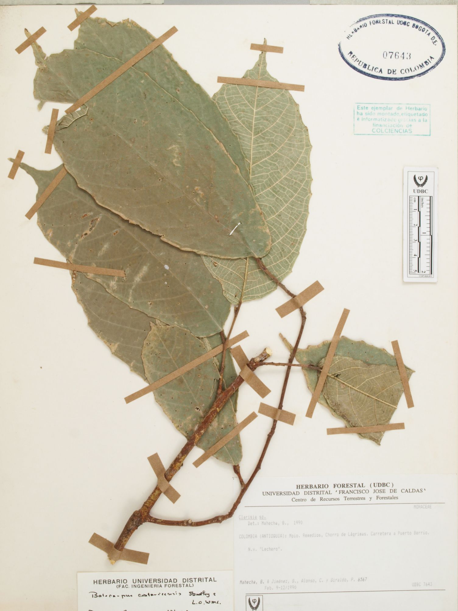 Fotografía del ejemplar Mahecha, G. 6567, determinado como Batocarpus costaricensis en el año 1998