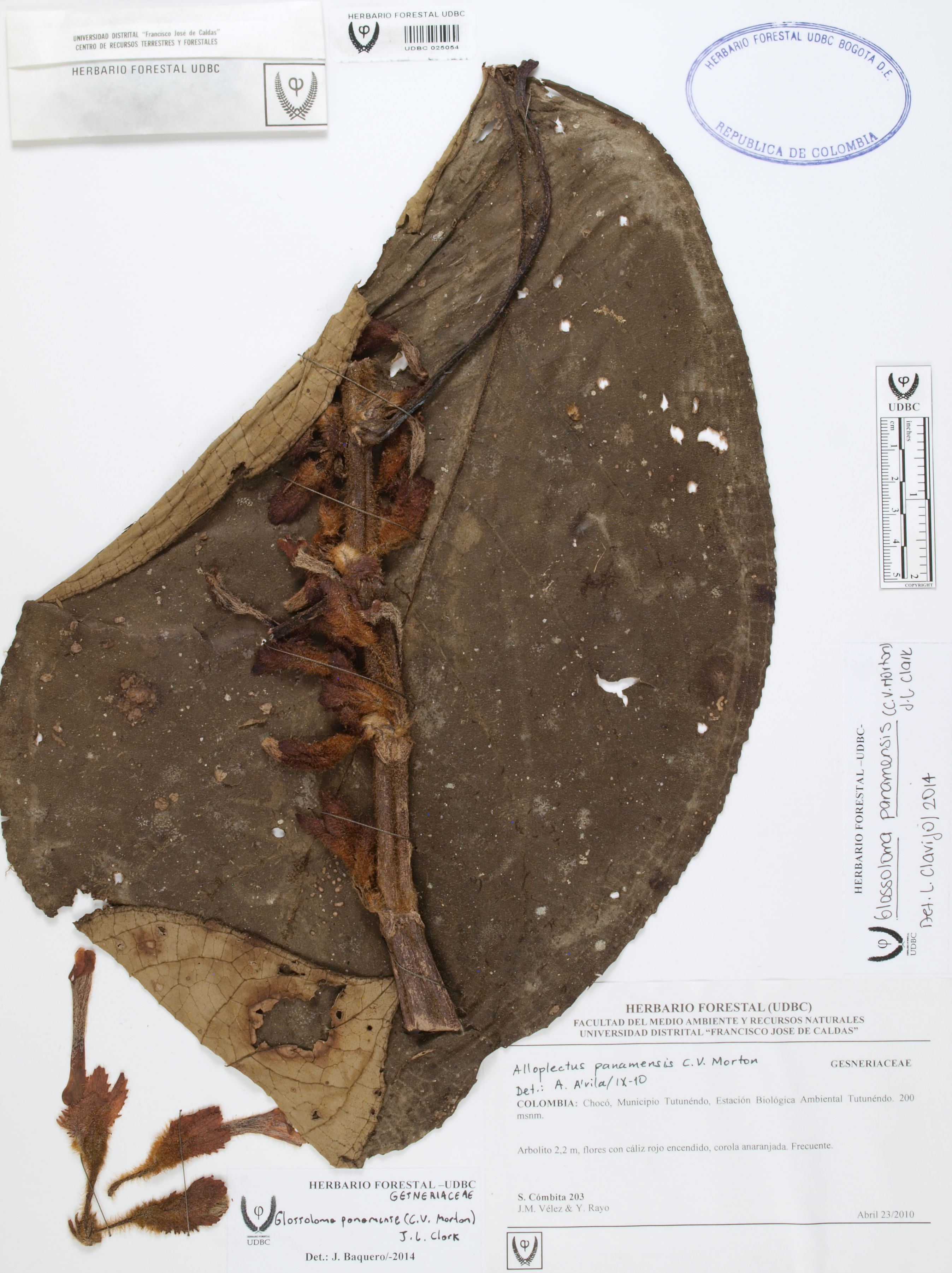 | dc.description | Fotografía del ejemplar Cómbita, S. 203, determinado como Glossoloma panamense en el año 2010 | |