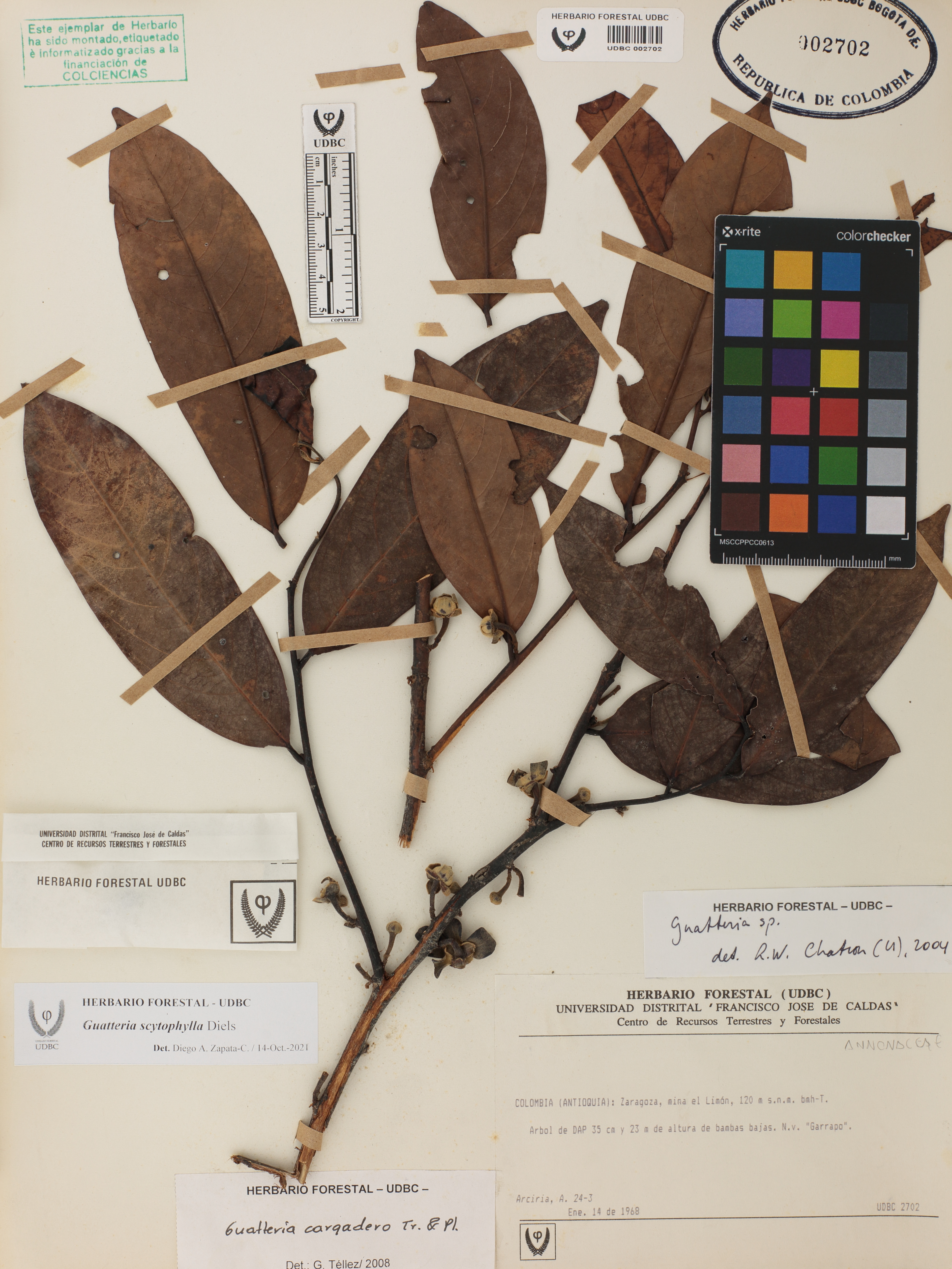 Fotografía del ejemplar Arciria, A. 24-3, determinado como Guatteria scytophylla en el año 2021