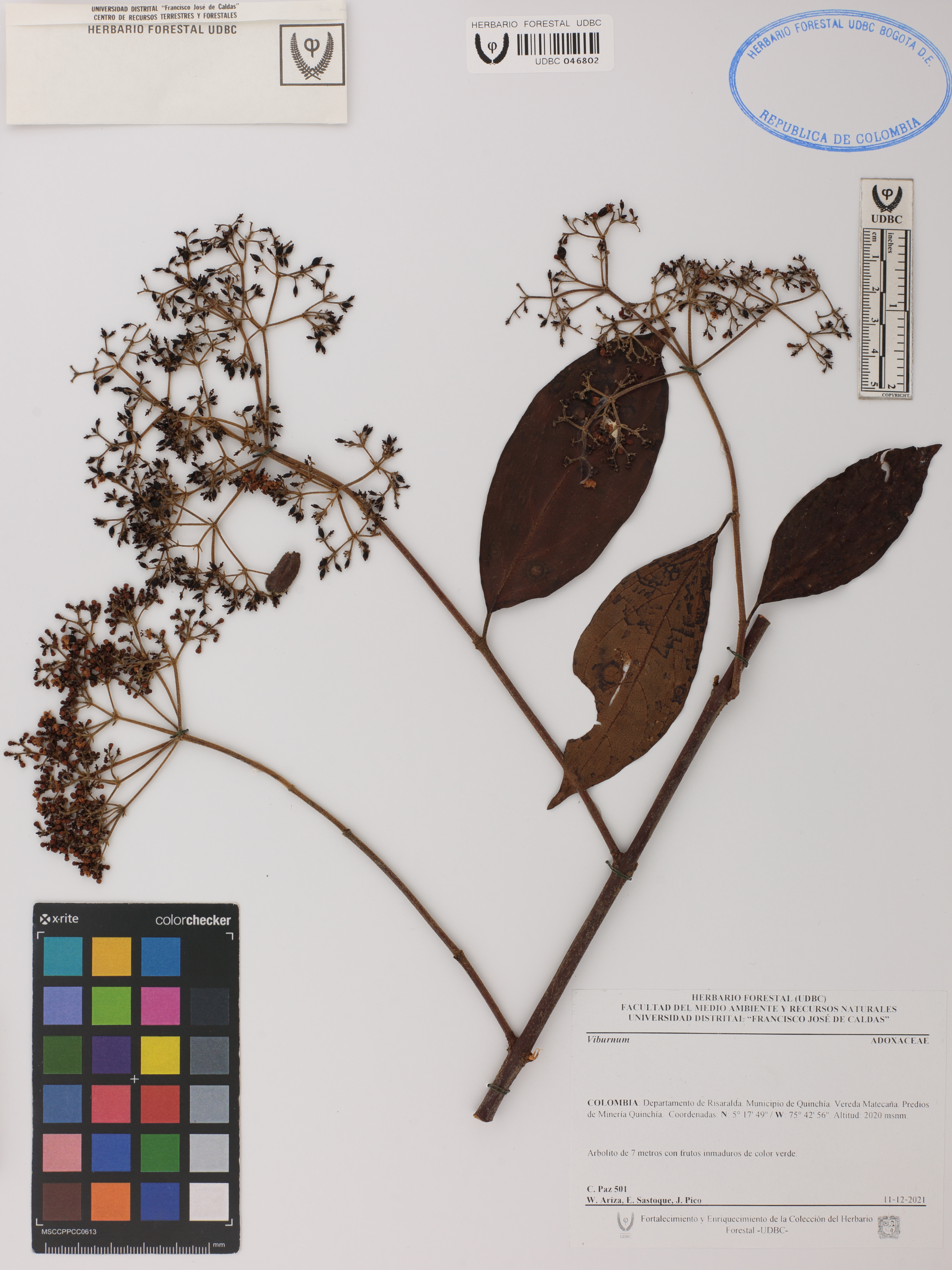 Fotografía del ejemplar Paz, C. 501, determinado como Viburnum sp.