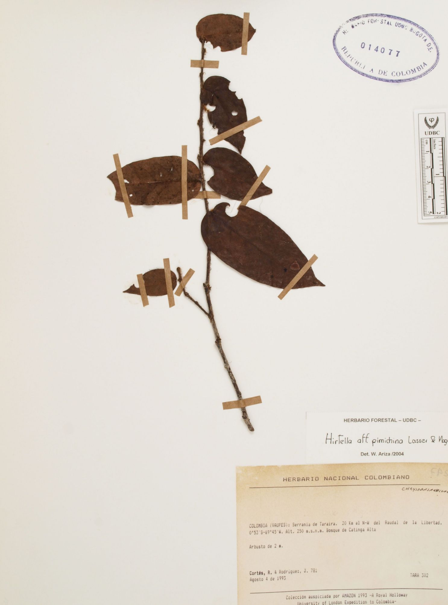 | dc.description | Fotografía del ejemplar Cortés-B., R. 781, determinado como Hirtella pimichina en el año 2004 | |