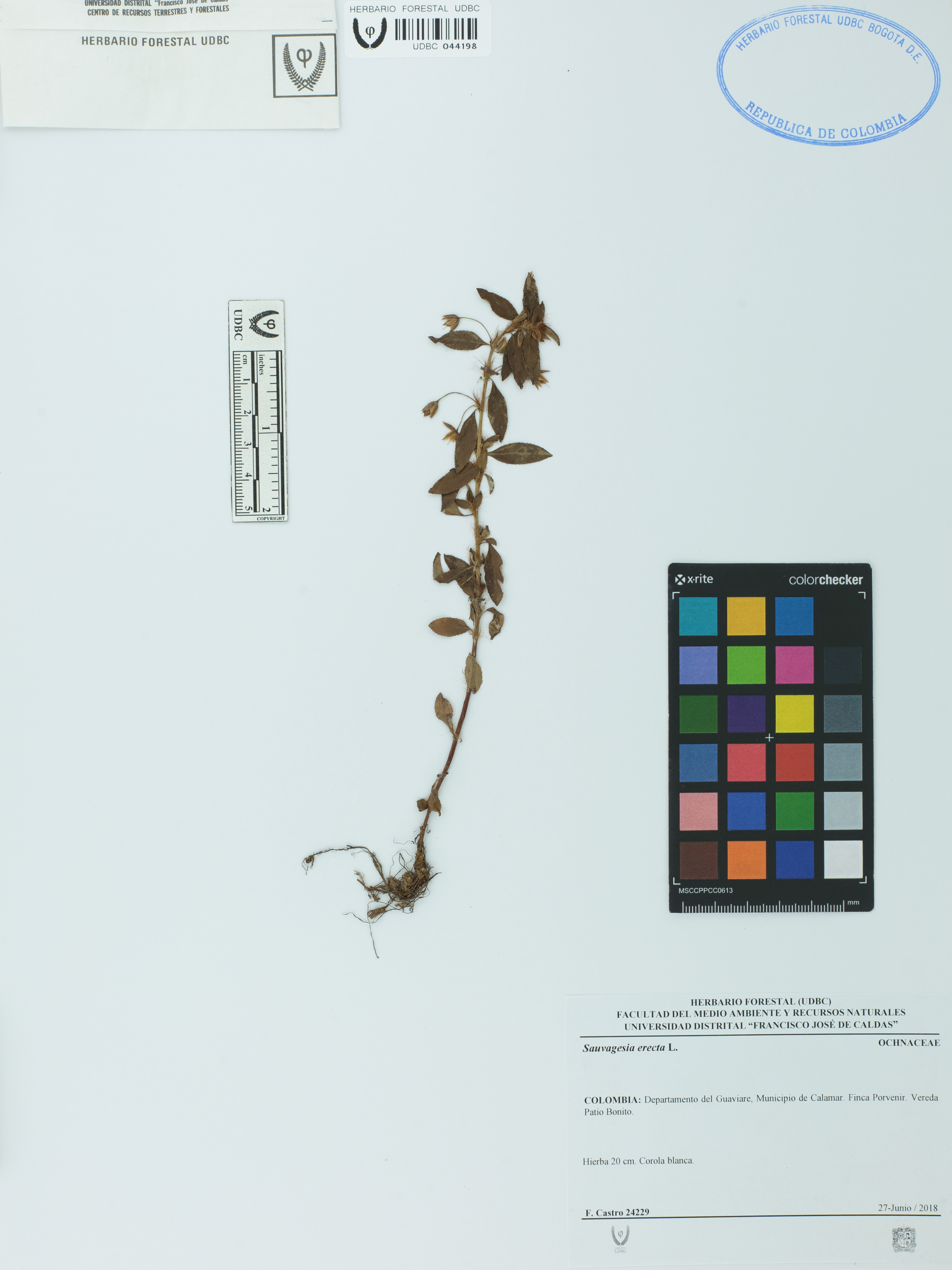 Fotografía del ejemplar Castro, F. 24229, determinado como Sauvagesia erecta en el año 2018