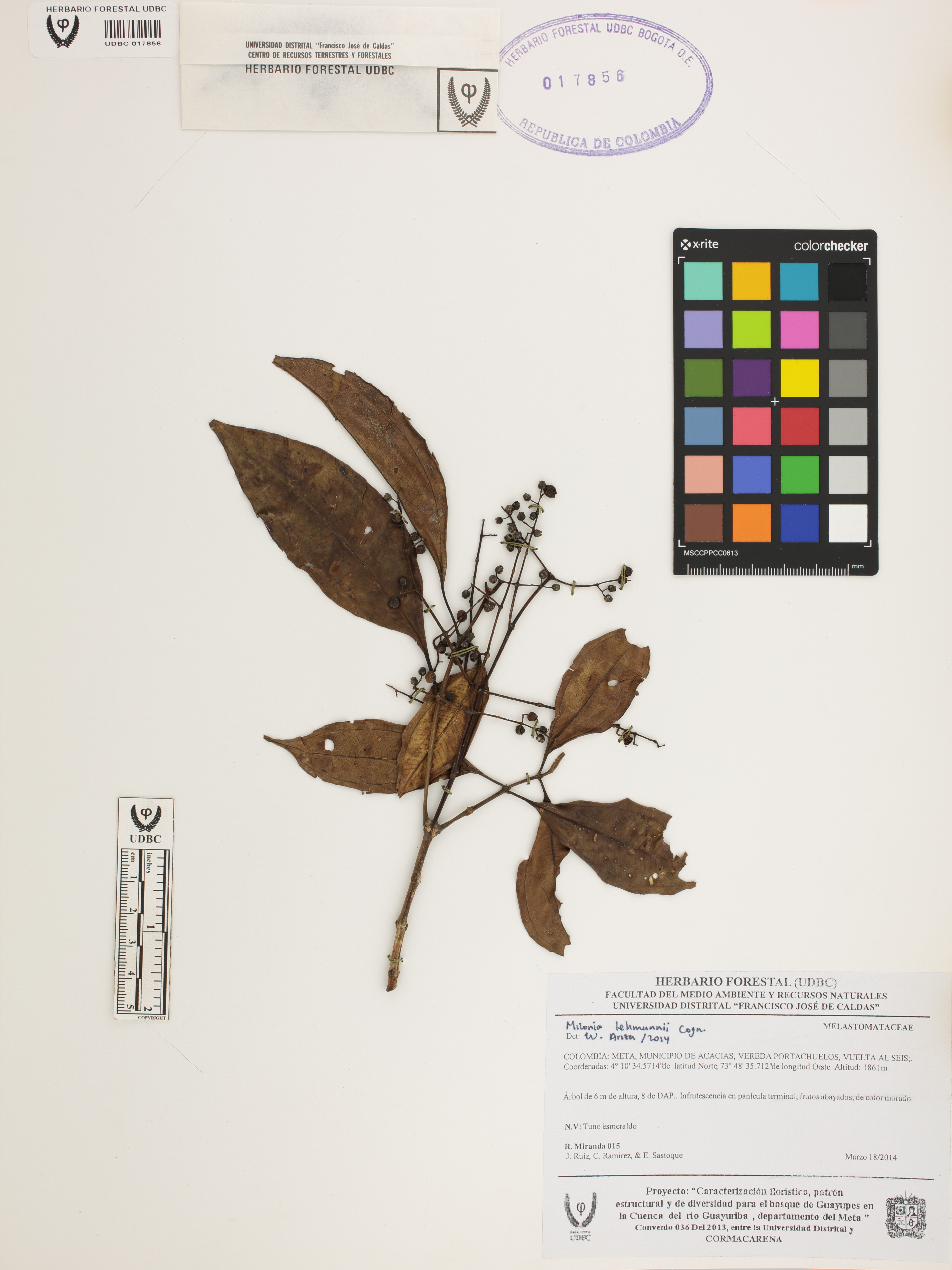 Fotografía del ejemplar Miranda, R. 15, determinado como Miconia lehmannii en el año 2014