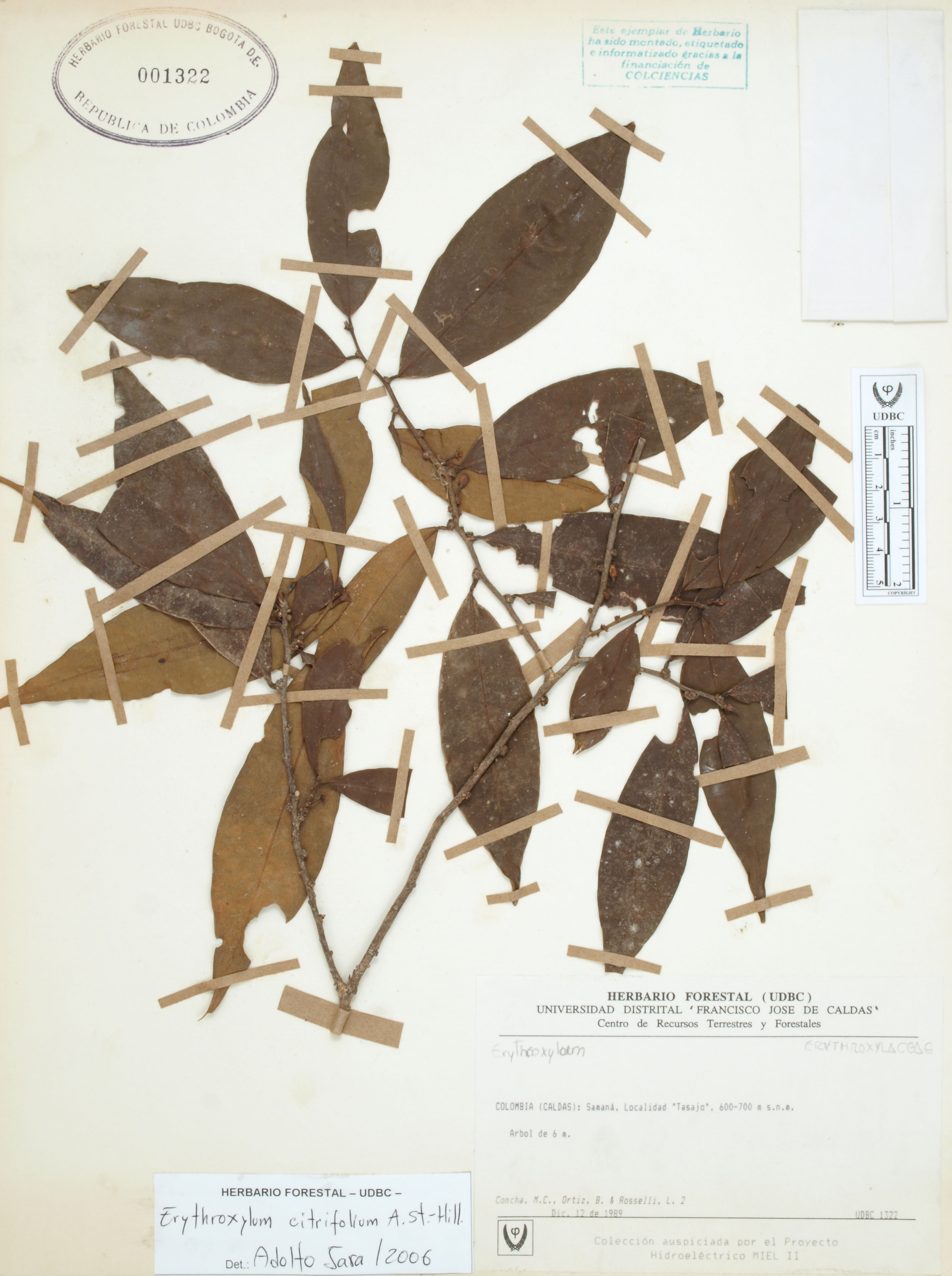 Fotografía del ejemplar Concha, M. 2, determinado como Erythroxylum citrifolium en el año 2006