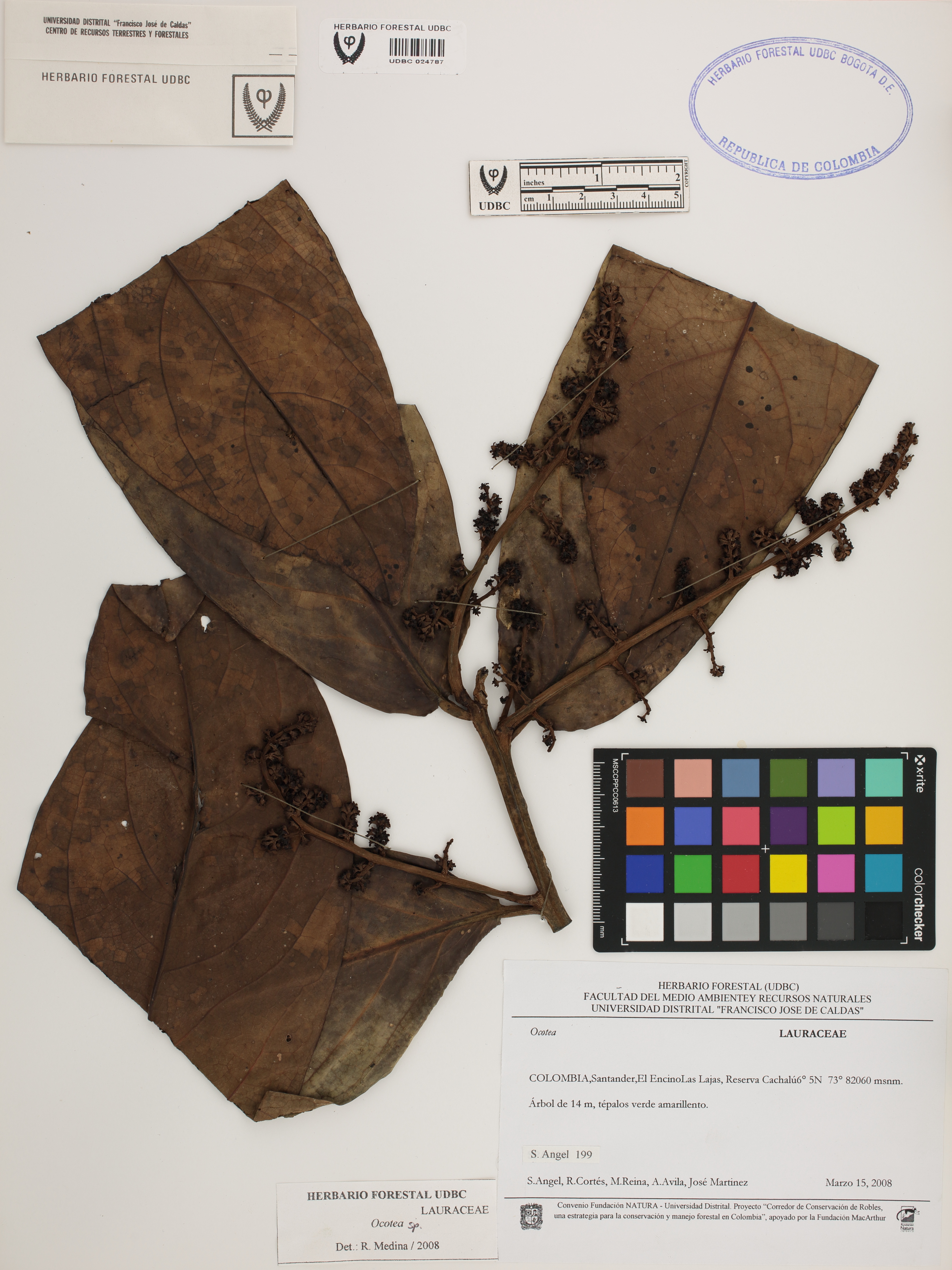 Fotografía del ejemplar Ángel, S. 199, determinado como Ocotea sp. en el año 2008