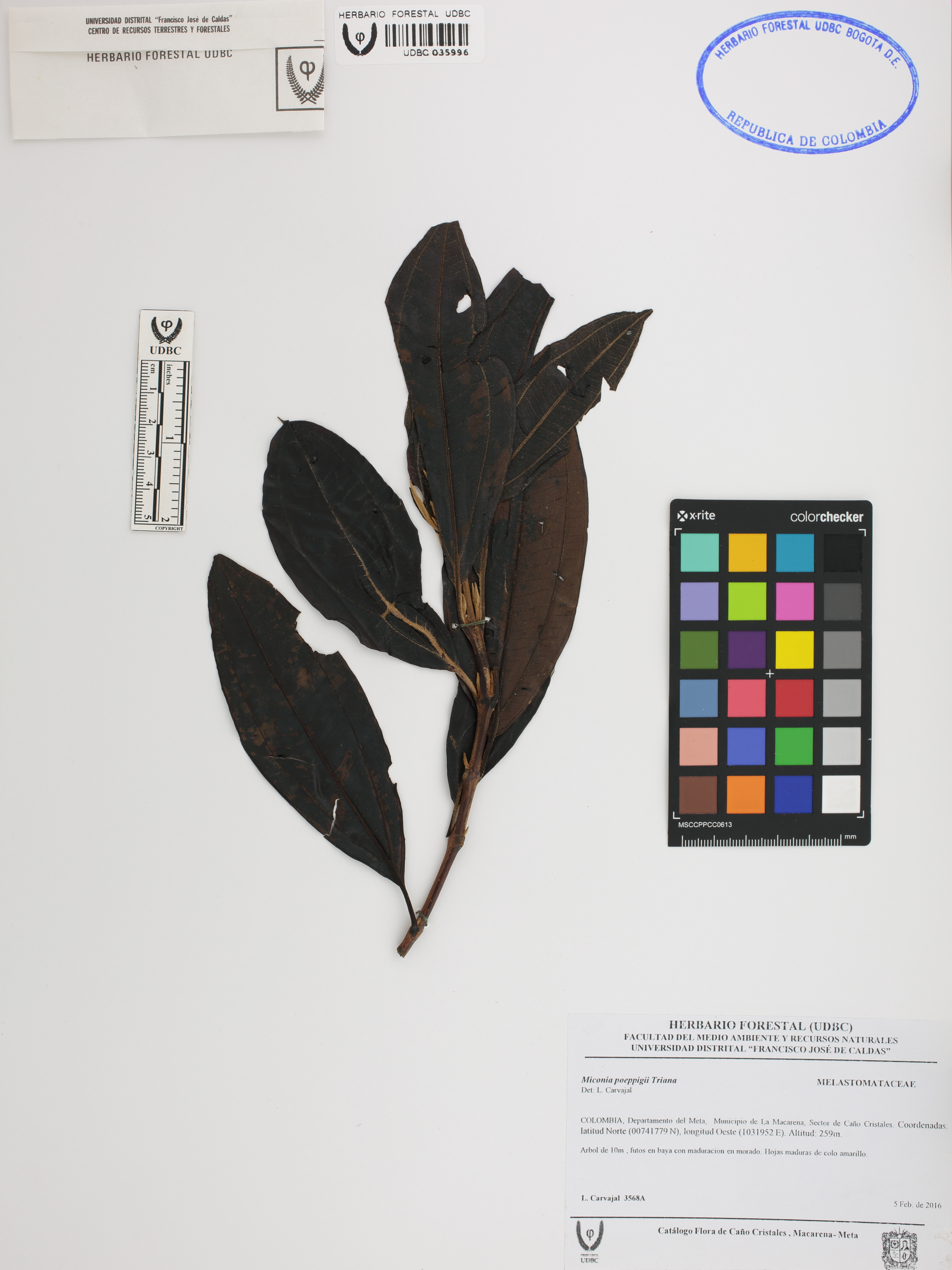 | dc.description | Fotografía del ejemplar Carvajal, L. 3568, determinado como Miconia poeppigii | |