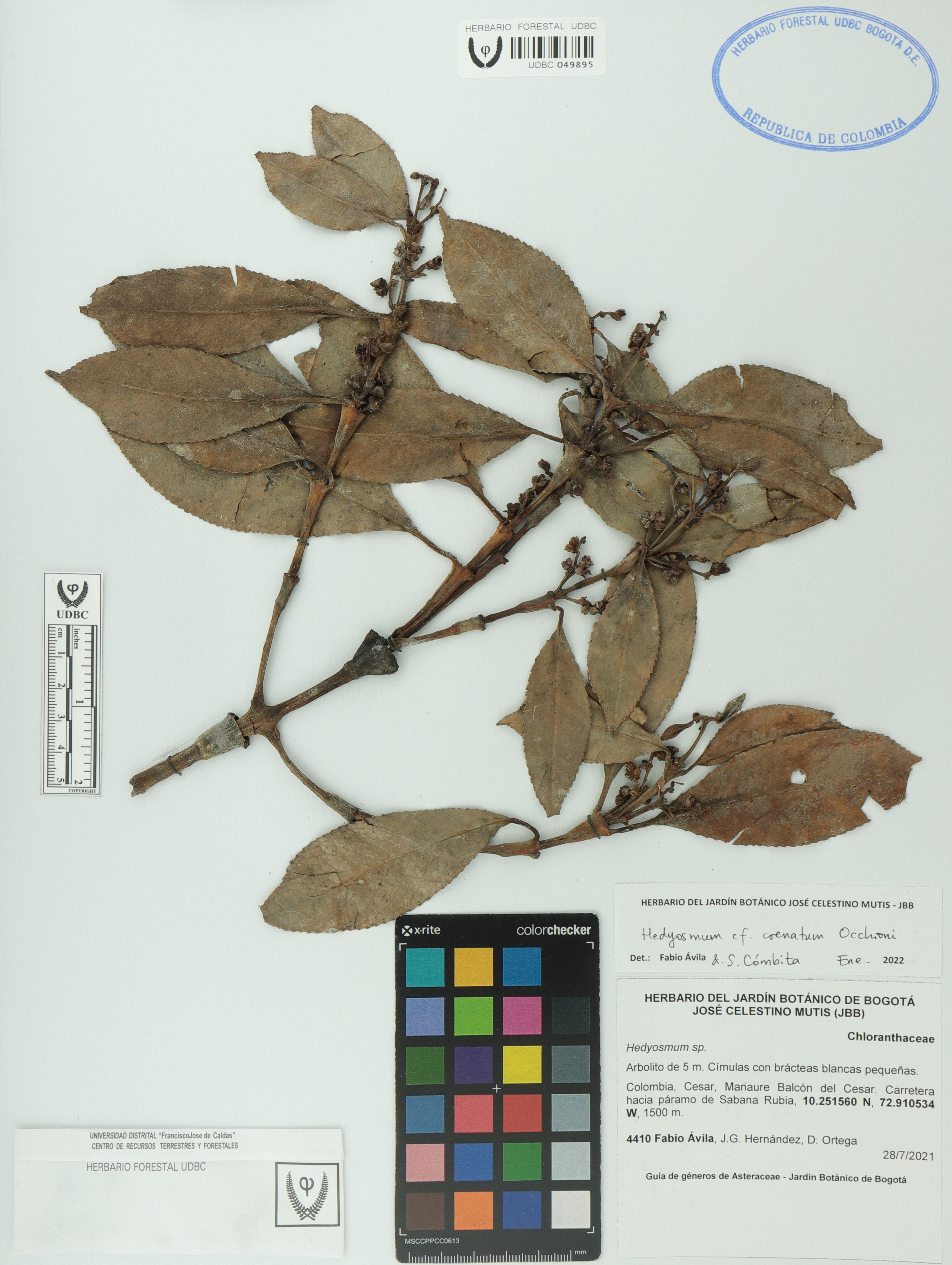 | dc.description | Fotografía del ejemplar Ávila, F. 4410, determinado como Hedyosmum crenatum en el año 2022 | |