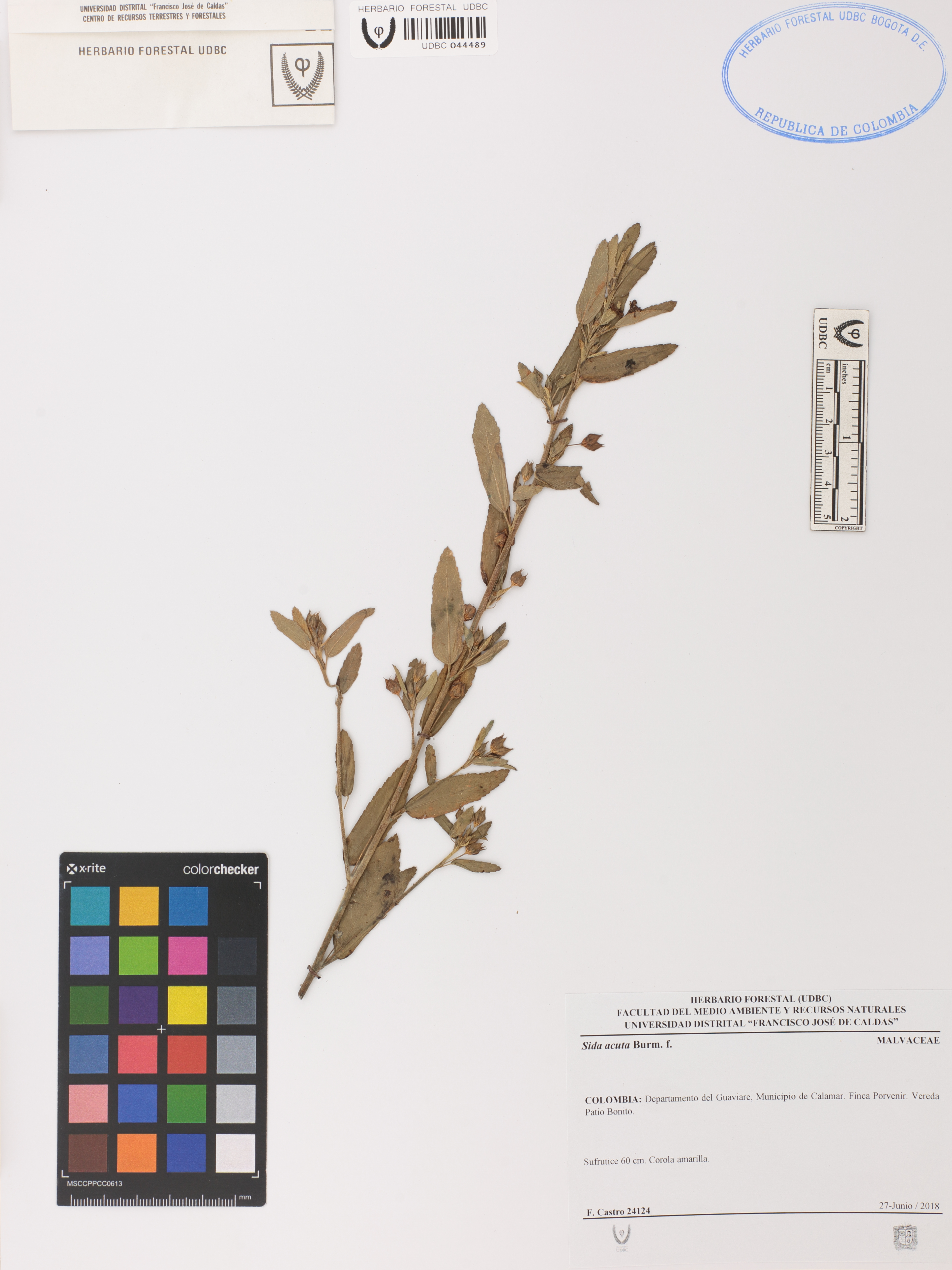 | dc.description | Fotografía del ejemplar Castro, F. 24124, determinado como Sida acuta en el año 2018 | |