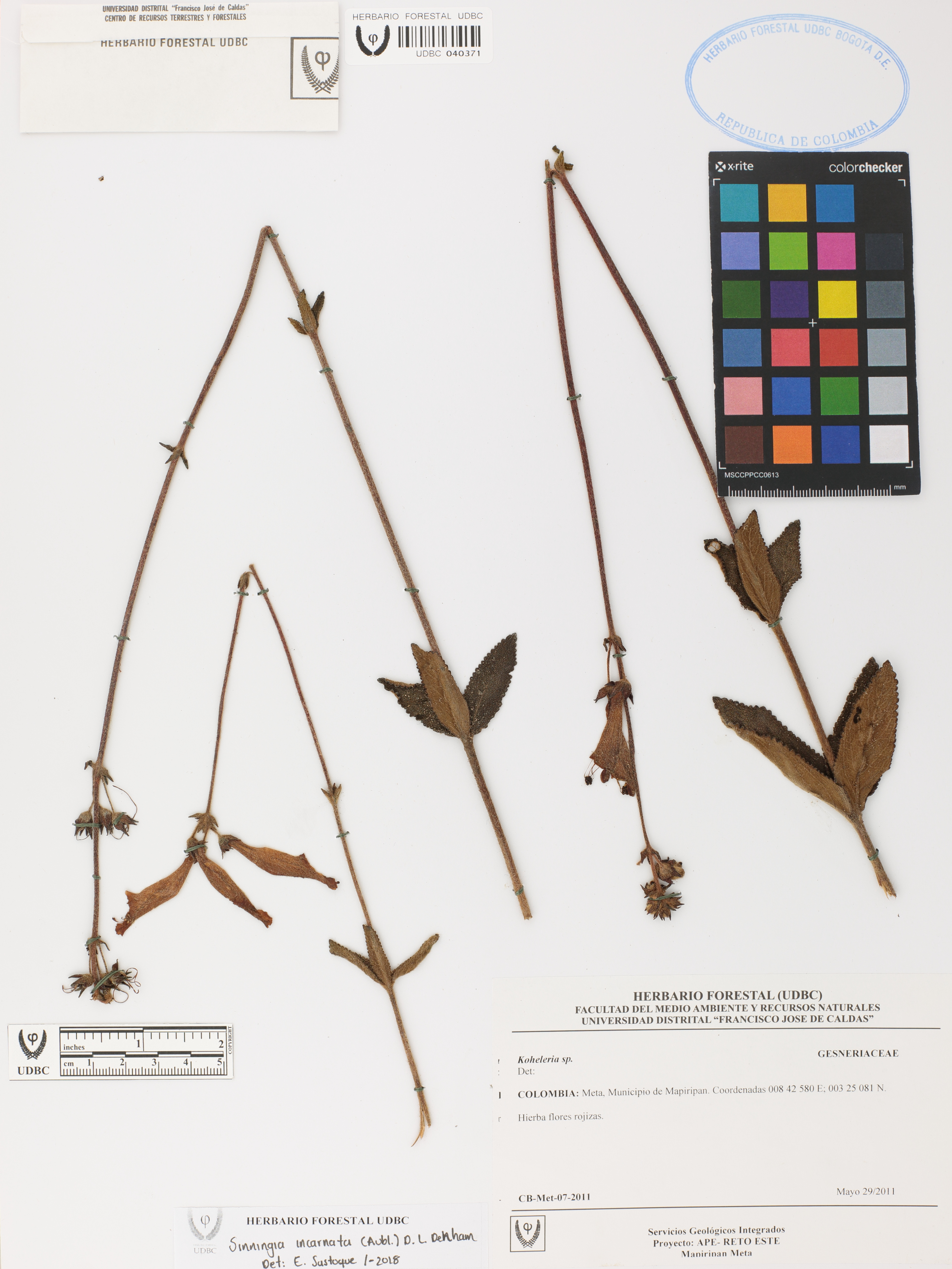 Fotografía del ejemplar SD 7, determinado como Sinningia incarnata en el año 2018