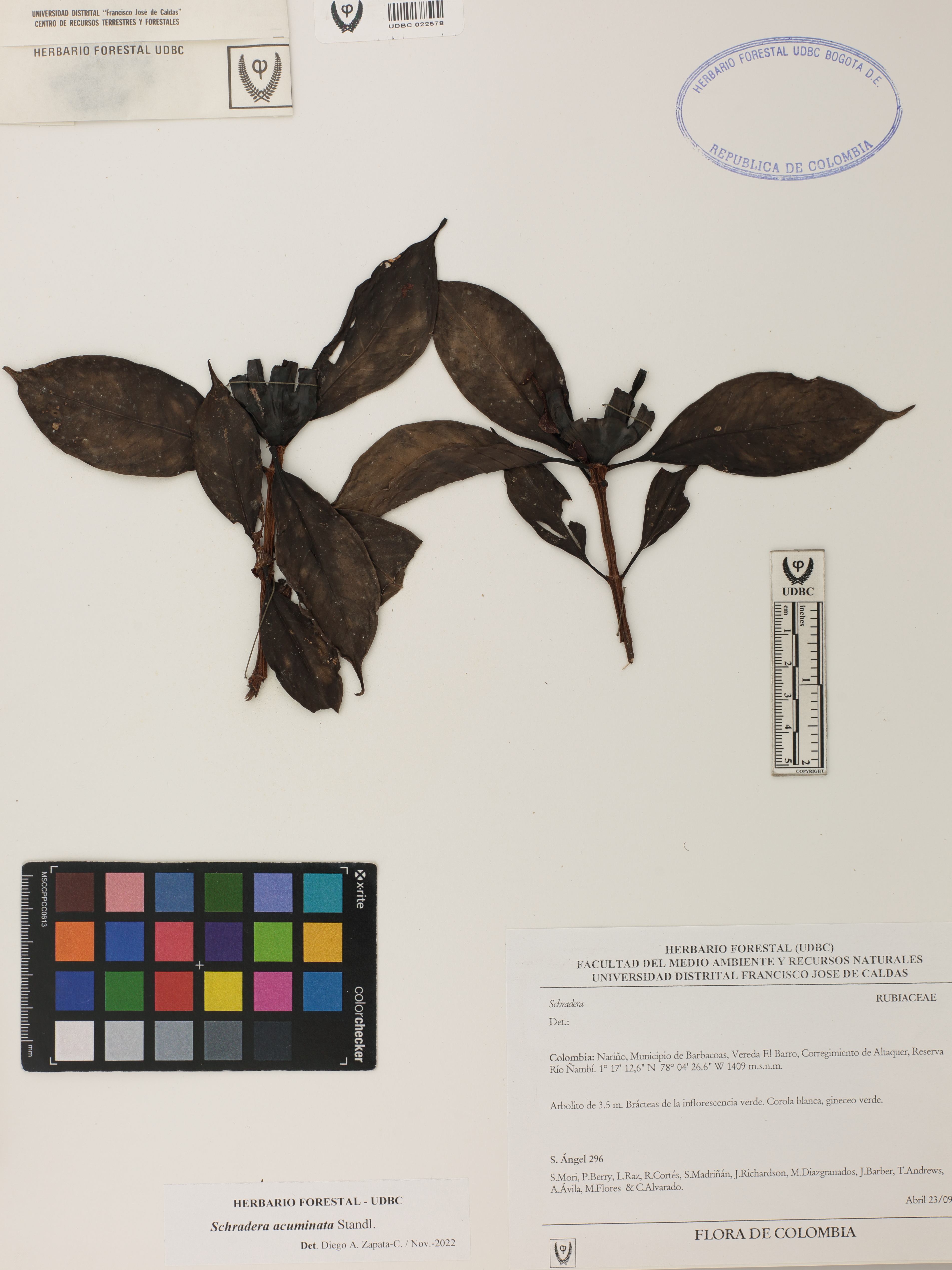 Fotografía del ejemplar Ángel, S. 296, determinado como Schradera acuminata en el año 2022