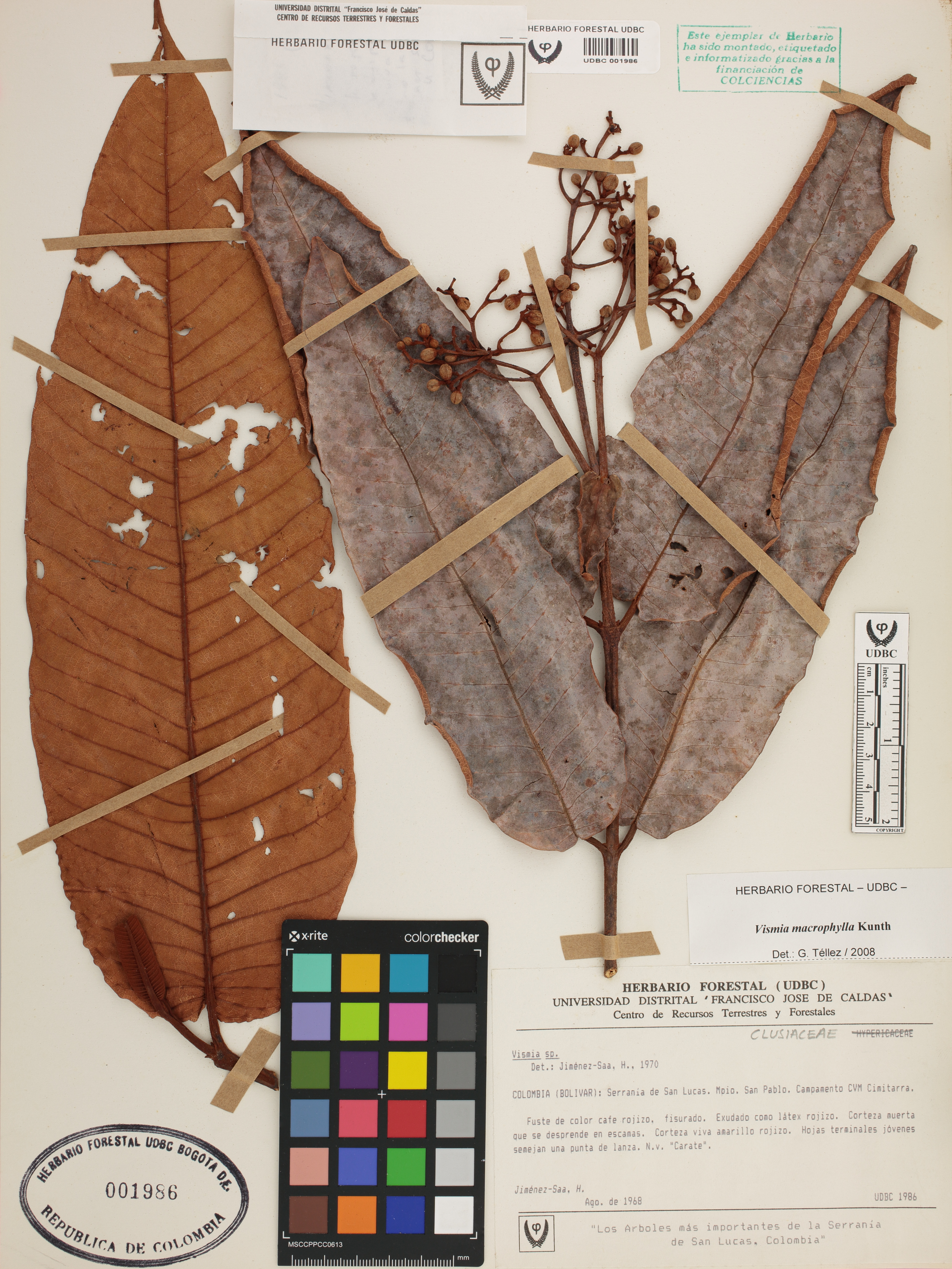Fotografía del ejemplar Jiménez-Saa, H., determinado como Vismia macrophylla en el año 2008
