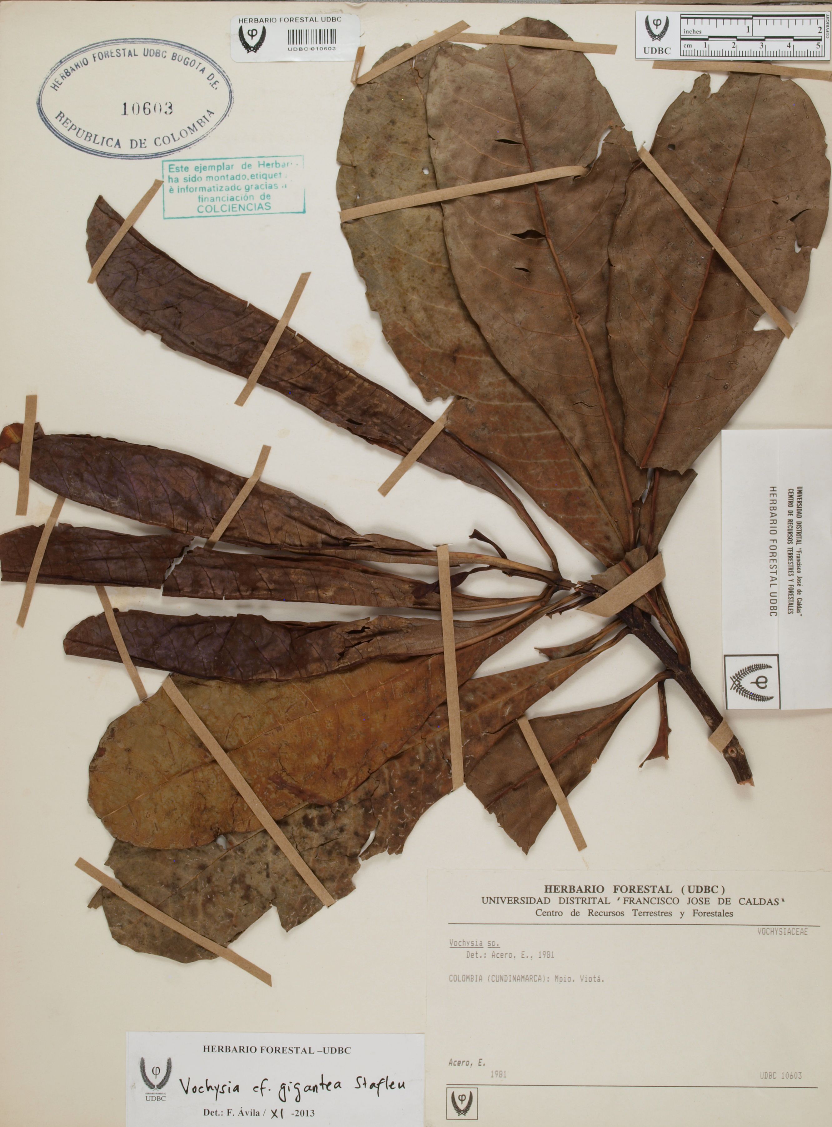 Fotografía del ejemplar Acero, E., determinado como Vochysia gigantea en el año 2013
